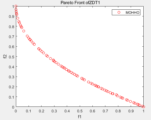 将多目标进化思想融入到哈里斯鹰优化算法中,得到多目标哈里斯鹰优化算法(MOHHO),将MOHHO分别在ZDT1、ZDT2、ZDT3、ZDT4、ZDT6上进行测试,最终的结果表明:MOHHO与传统多目标优化算法相比,在多目标问题上具有更好的优化性能和稳定性,具有一定的竞争力。
