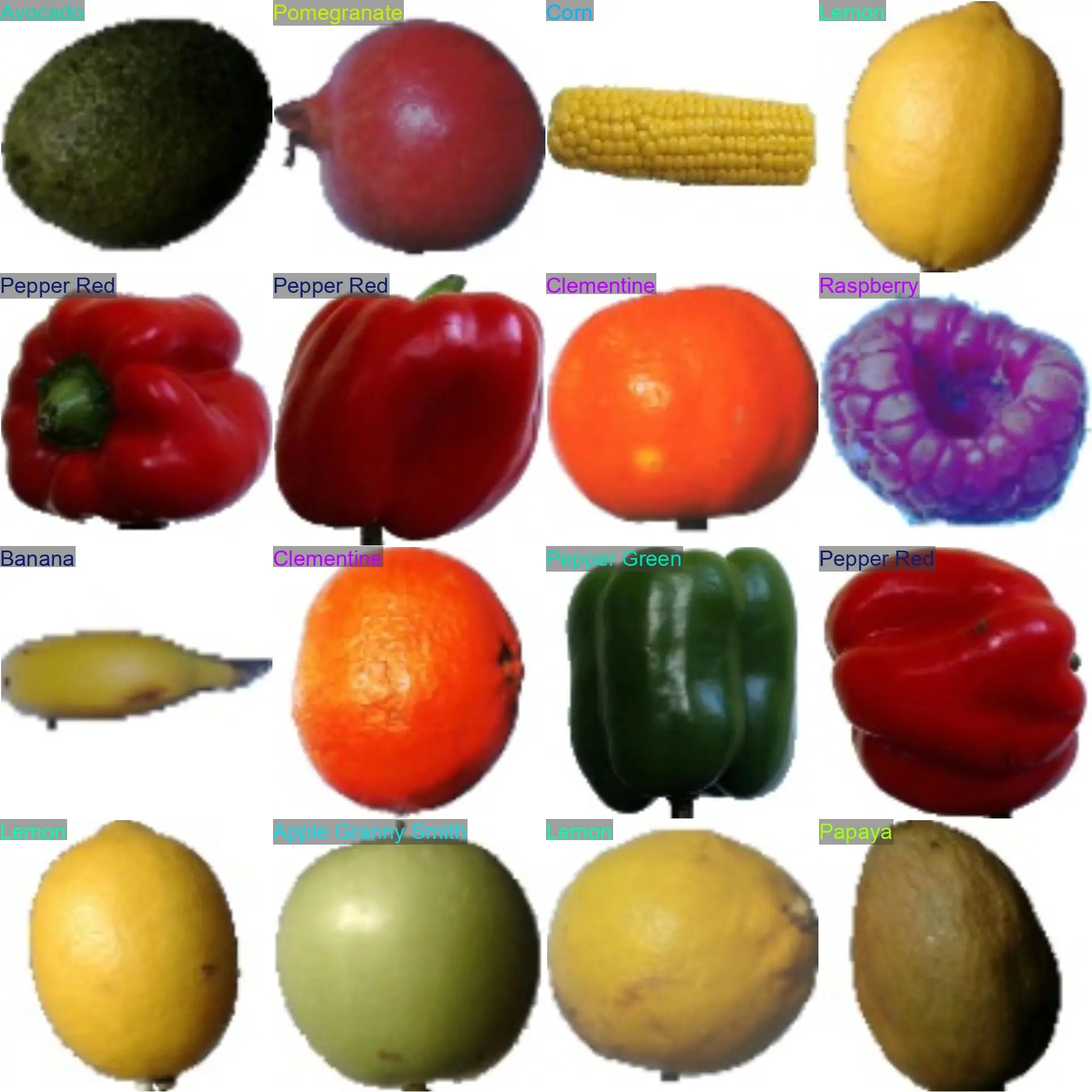 - 数据集类别:Watermelon、Tomato、Strawberry、Raspberry、Potato Red、Pomegranate、Plum、Pineapple、Pepper Red、Pepper Green、Pear、Peach、Passion Fruit、Papaya、Orange、Onion White、Mango、Limes、Lemon、Kiwi、Grape Blue、Cucumber Ripe、Corn、Clementine、Cherry、Cantaloupe、Cactus fruit、Blueberry、Banana、Avocado、Apricot、Apple Granny Smith、Apple Braeburn;