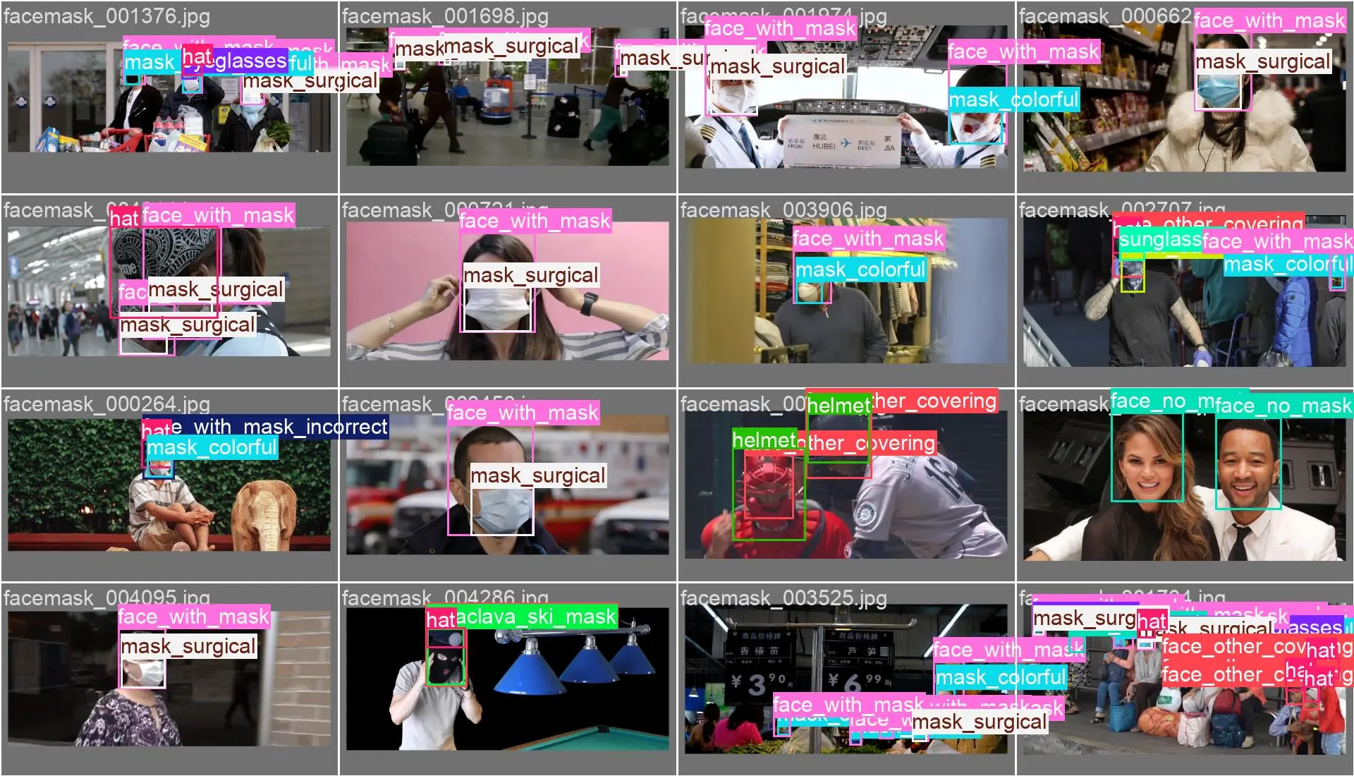 - 适用实际项目应用:公共场所监控场景下人脸佩戴检测项目,以及作为监控场景通用人体属性检测数据集场景数据的补充;