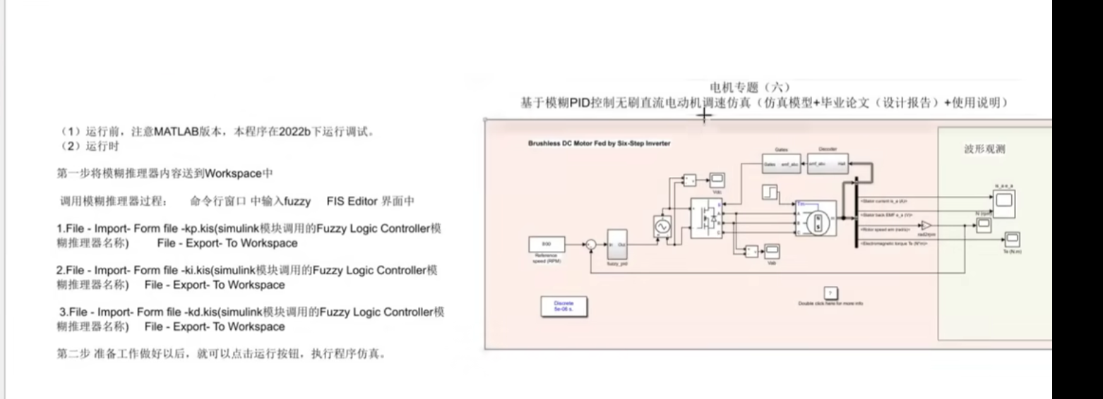 电机专题(六)基于模糊PID控制无刷直流电动机调速仿真(仿真模型+毕业论文或设计报告+使用说明):十分优异,适合做设计报告或者毕业论文参考使用