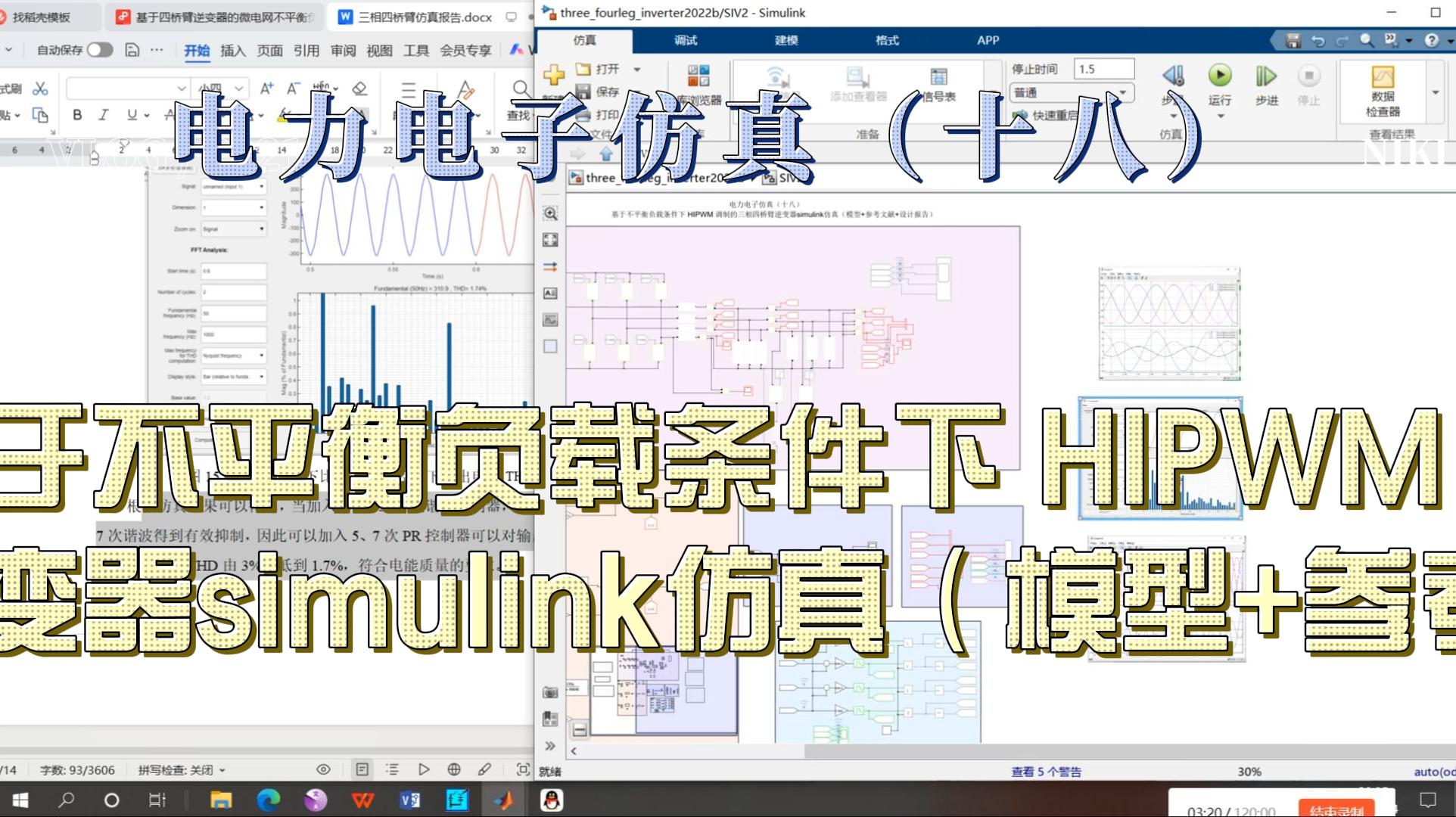 电力电子仿真(十八)基于不平衡负载条件下 HIPWM 调制的三相四桥臂逆变器simulink仿真(模型+参考文献+设计报告)