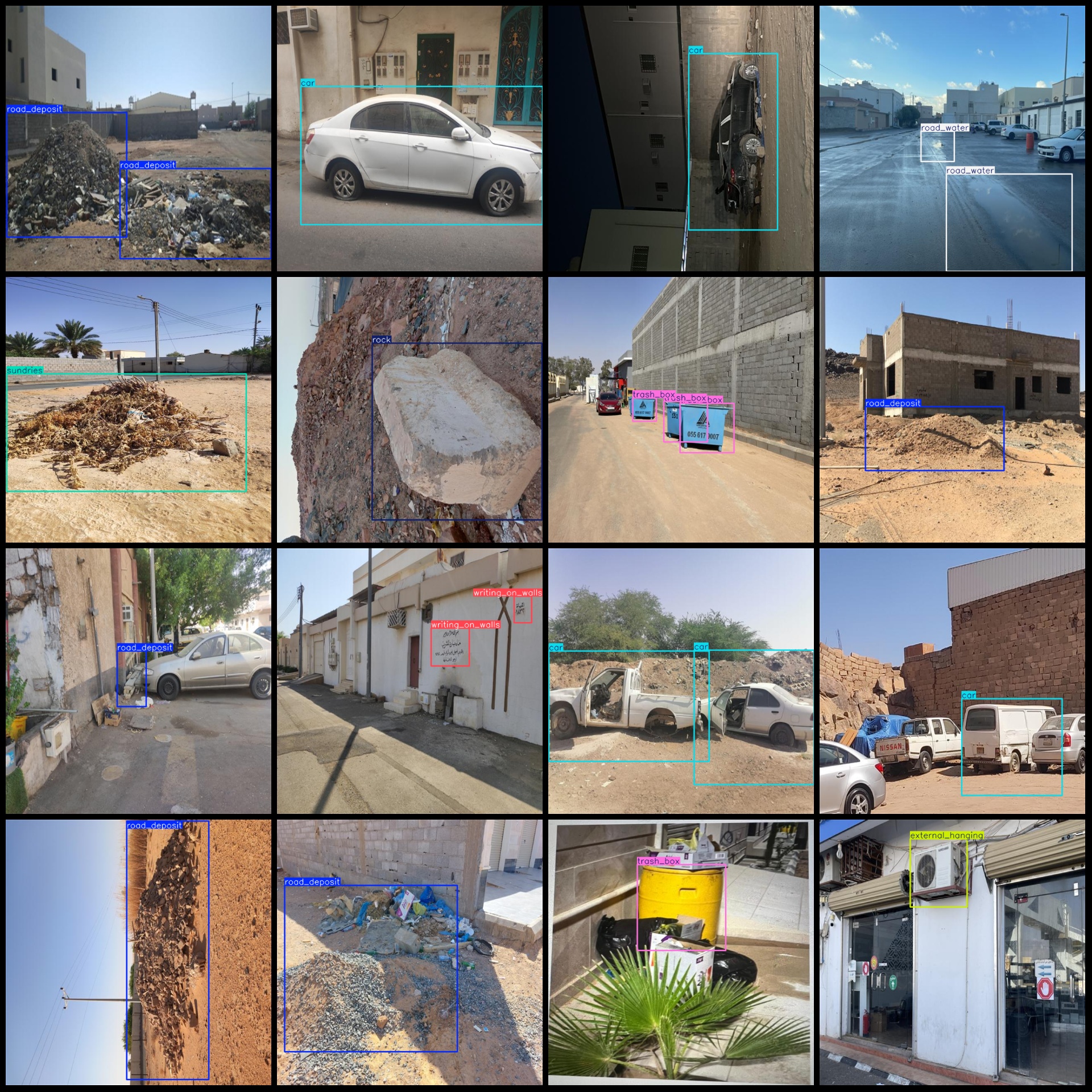 标注类别名称(注意yolo格式类别顺序不和这个对应,而以labels文件夹classes.txt为准):["car","external_hanging","illegal_construction","road_crack","road_deposit","road_water","roadside_damage","rock","sundries","trash_box","writing_on_walls"]
