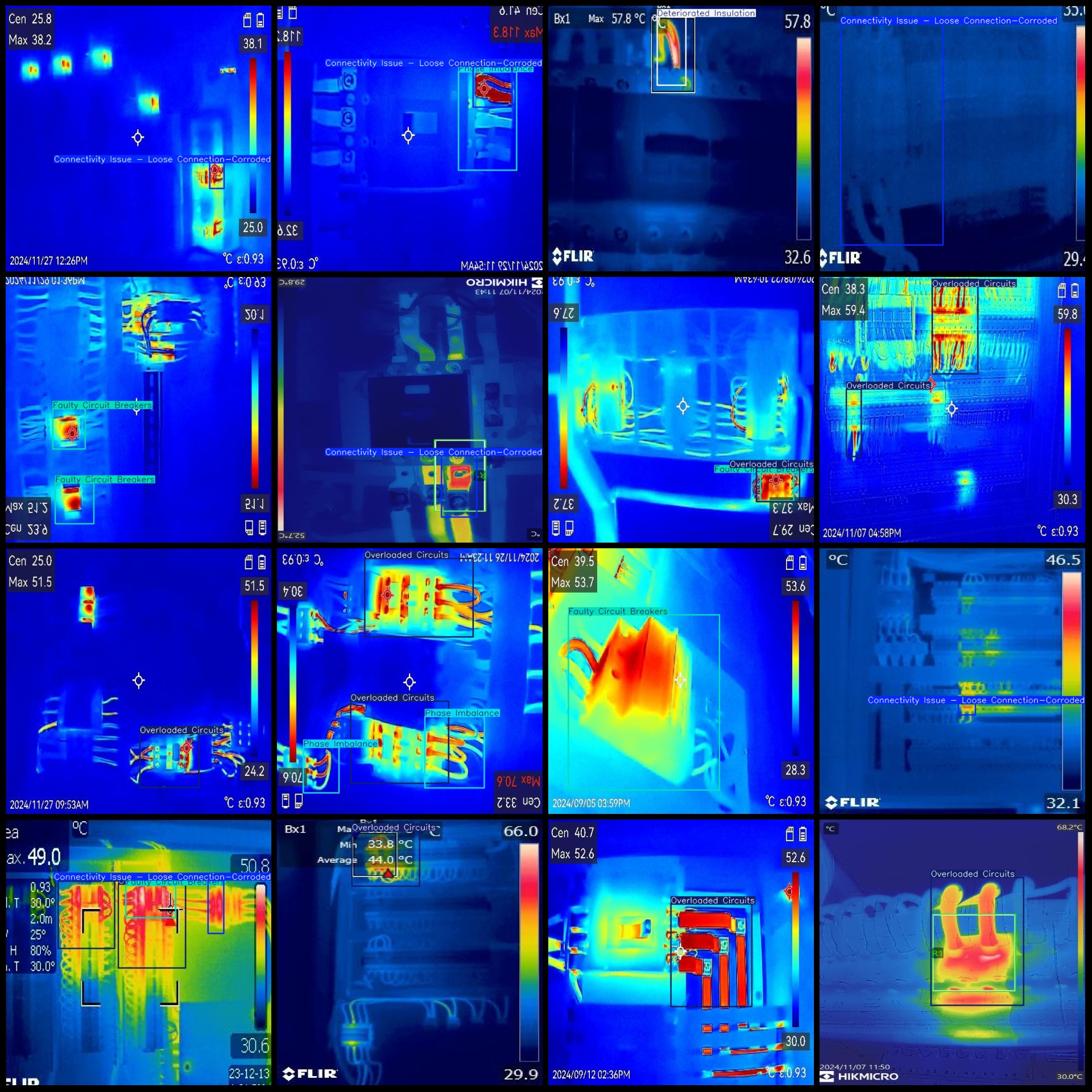 标注类别名称(注意yolo格式类别顺序不和这个对应,而以labels文件夹classes.txt为准):["Connectivity Issue - Loose Connection-Corroded","Deteriorated Insulation","Faulty Circuit Breakers","Normal Operation Condition","Overloaded Circuits","Phase Imbalance"]
