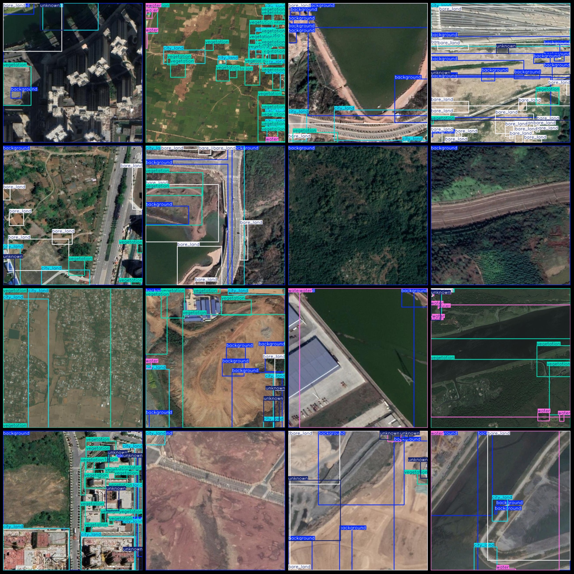 标注类别名称(注意yolo格式类别顺序不和这个对应,而以labels文件夹classes.txt为准):["background","bare_land","city_land","unknown","vegetation","water"]