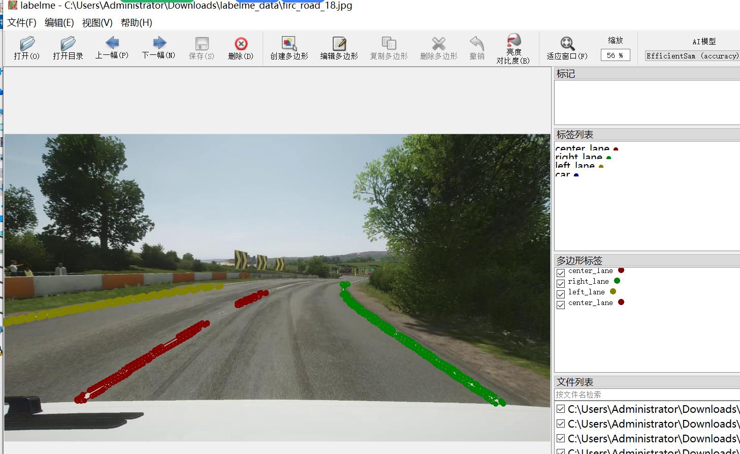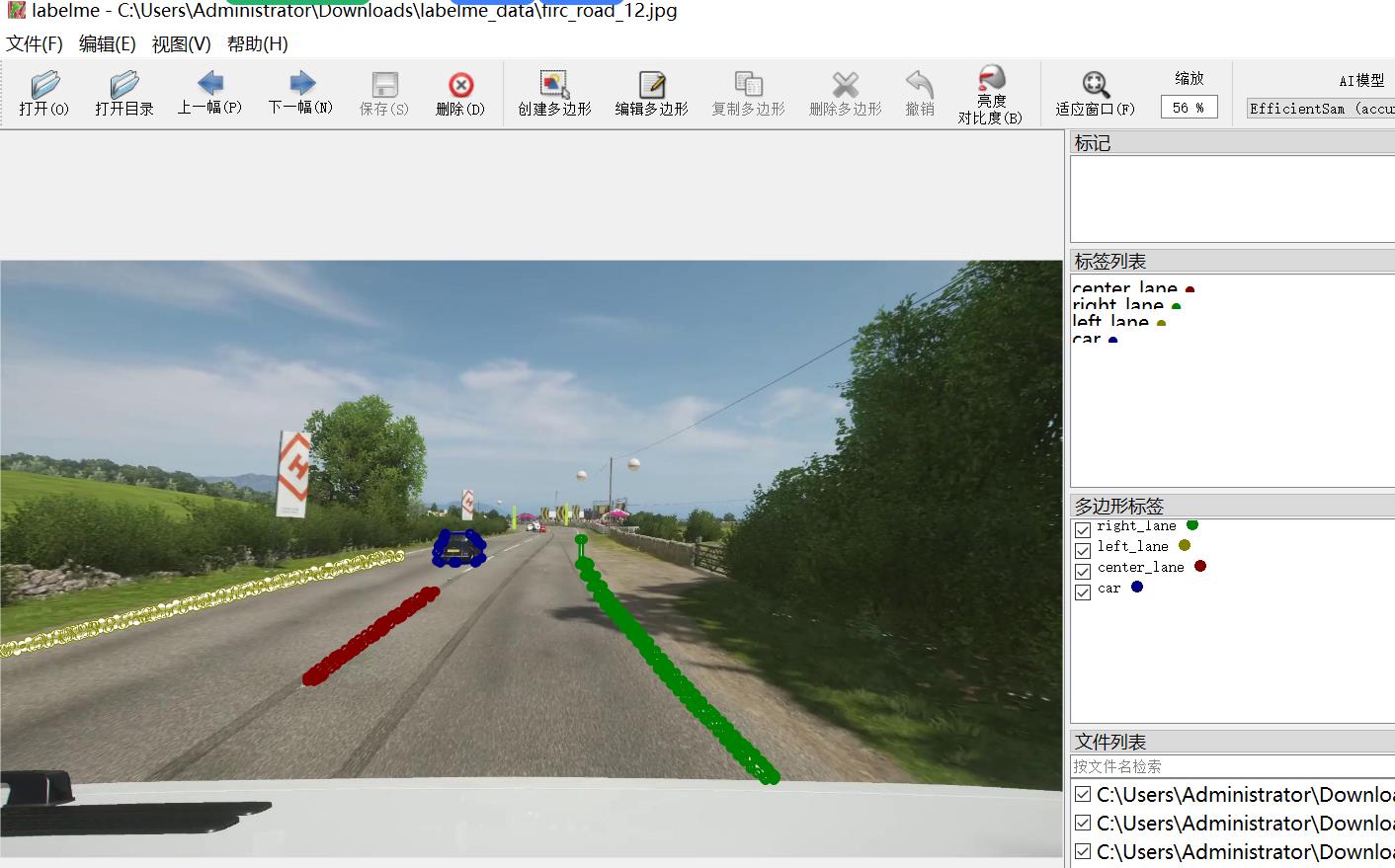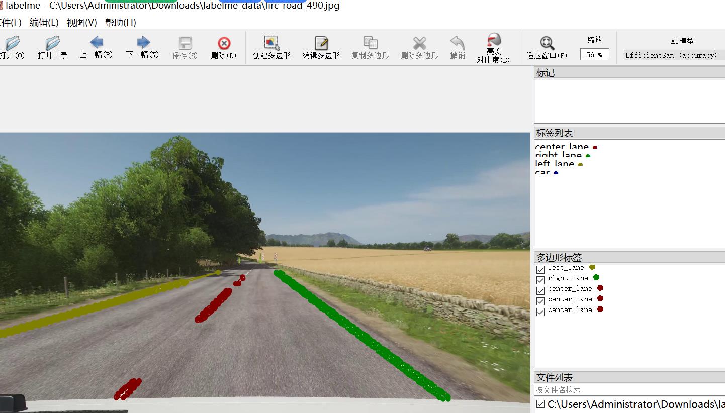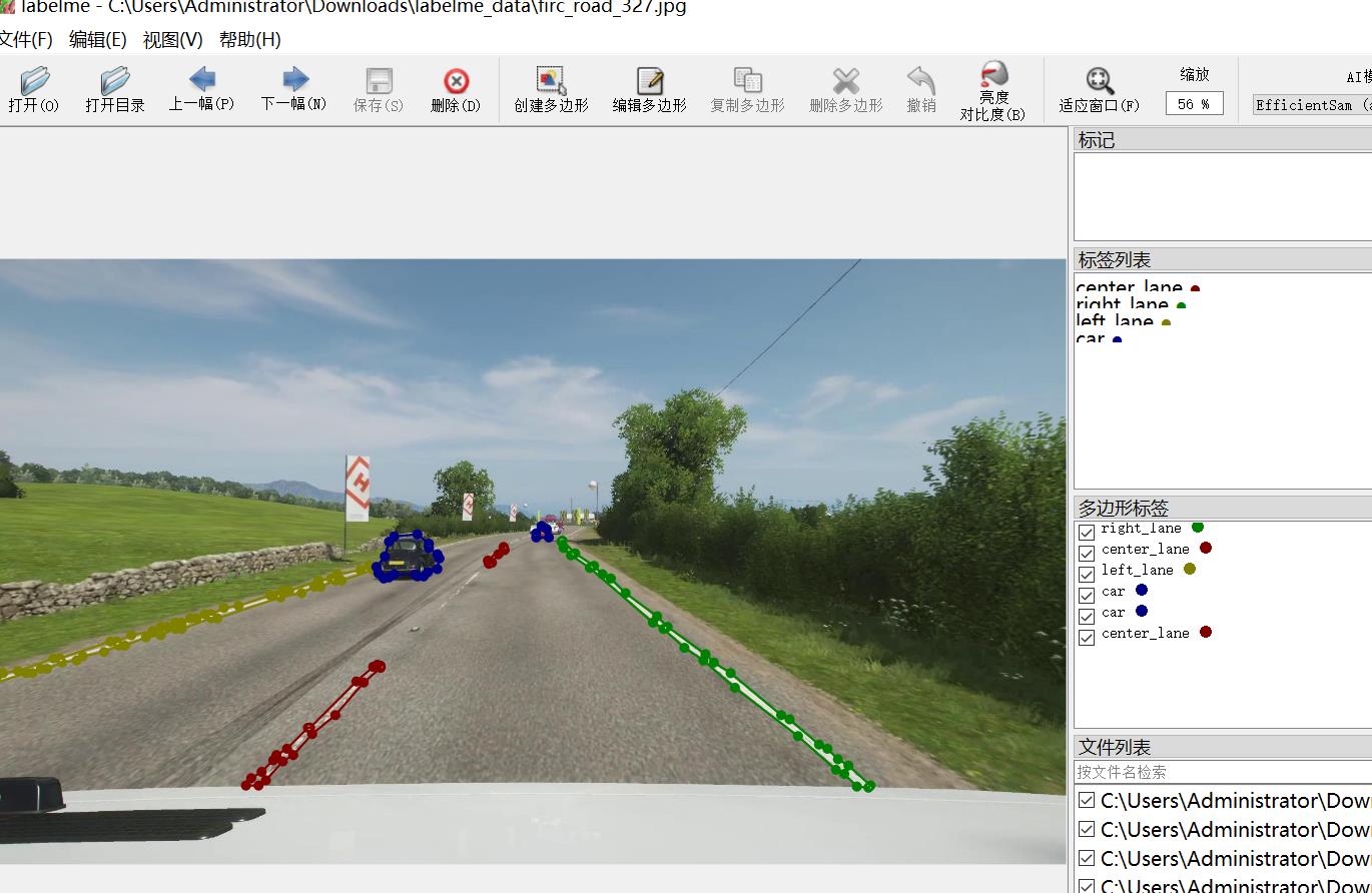 标注类别名称:["center_lane","right_lane","left_lane","car"]