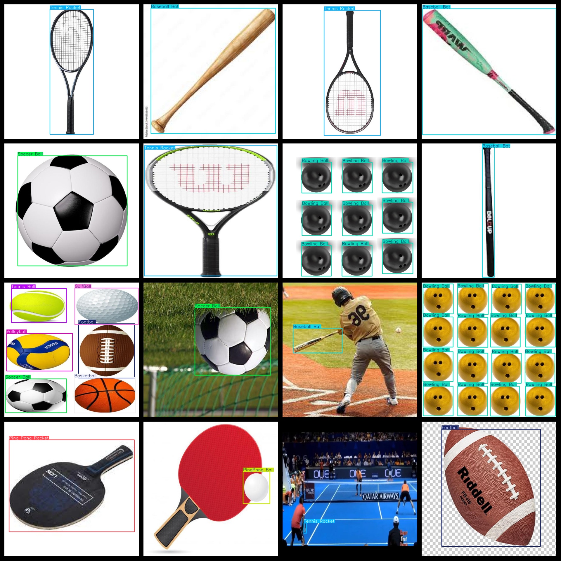 标签名称:["Baseball","Baseball Bat","Basketball","Bowling Ball","Football","GolfBall","Ping Pong Racket","PingPong Ball","Soccer Ball","Tennis Ball","Tennis Racket","Volleyball"]