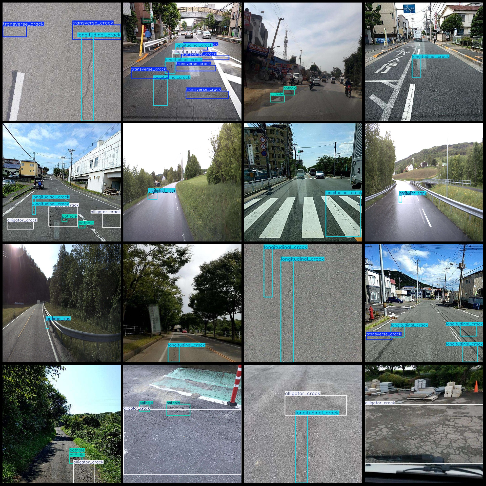 标注类别名称(注意yolo格式类别顺序不和这个对应,而以labels文件夹classes.txt为准):["alligator_crack","longitudinal_crack","pothole","transverse_crack"]