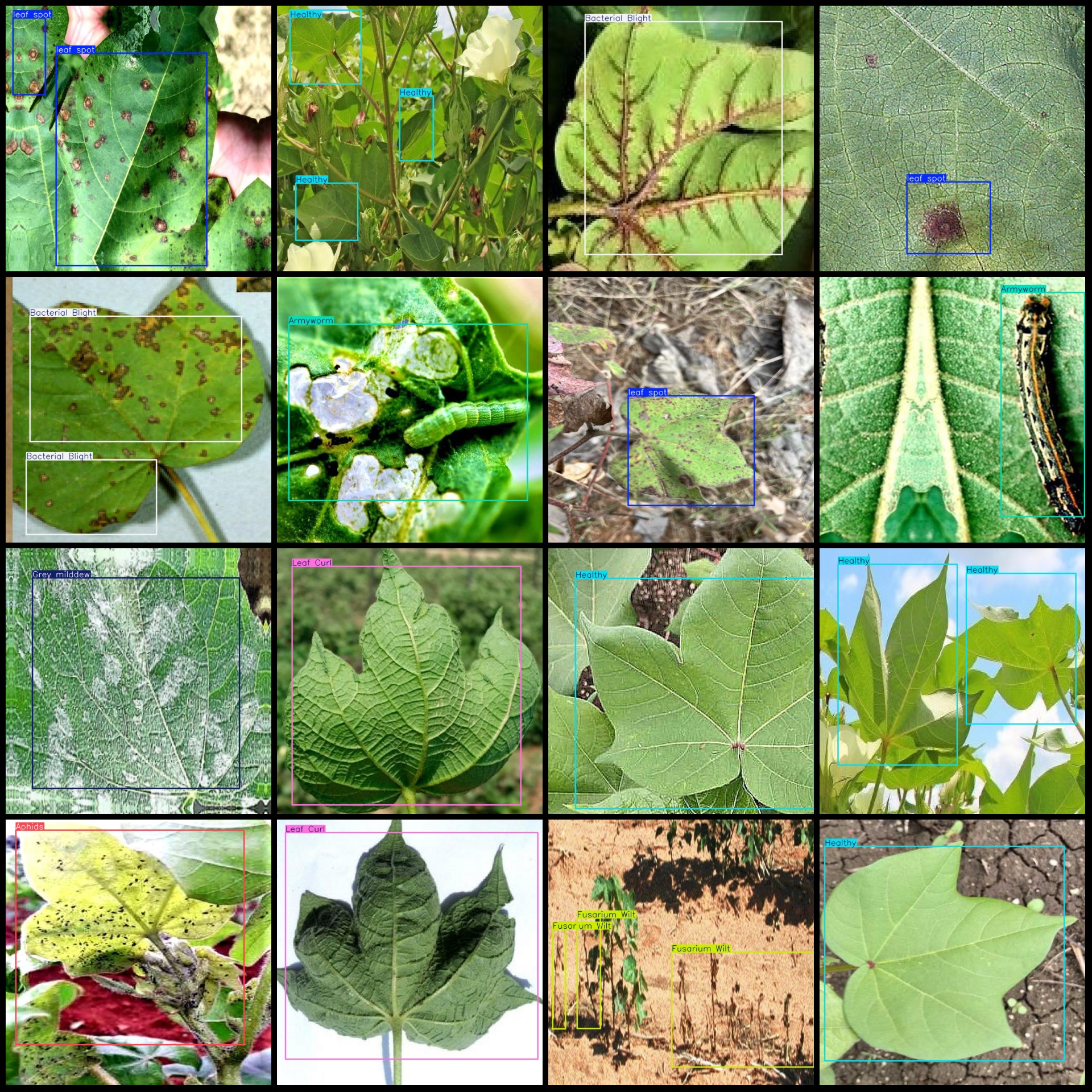 标注类别名称(注意yolo格式类别顺序不和这个对应,而以labels文件夹classes.txt为准):["Aphids","Armyworm","Bacterial Blight","Fusarium Wilt","Grey milddew","Healthy","Leaf Curl","leaf spot"]