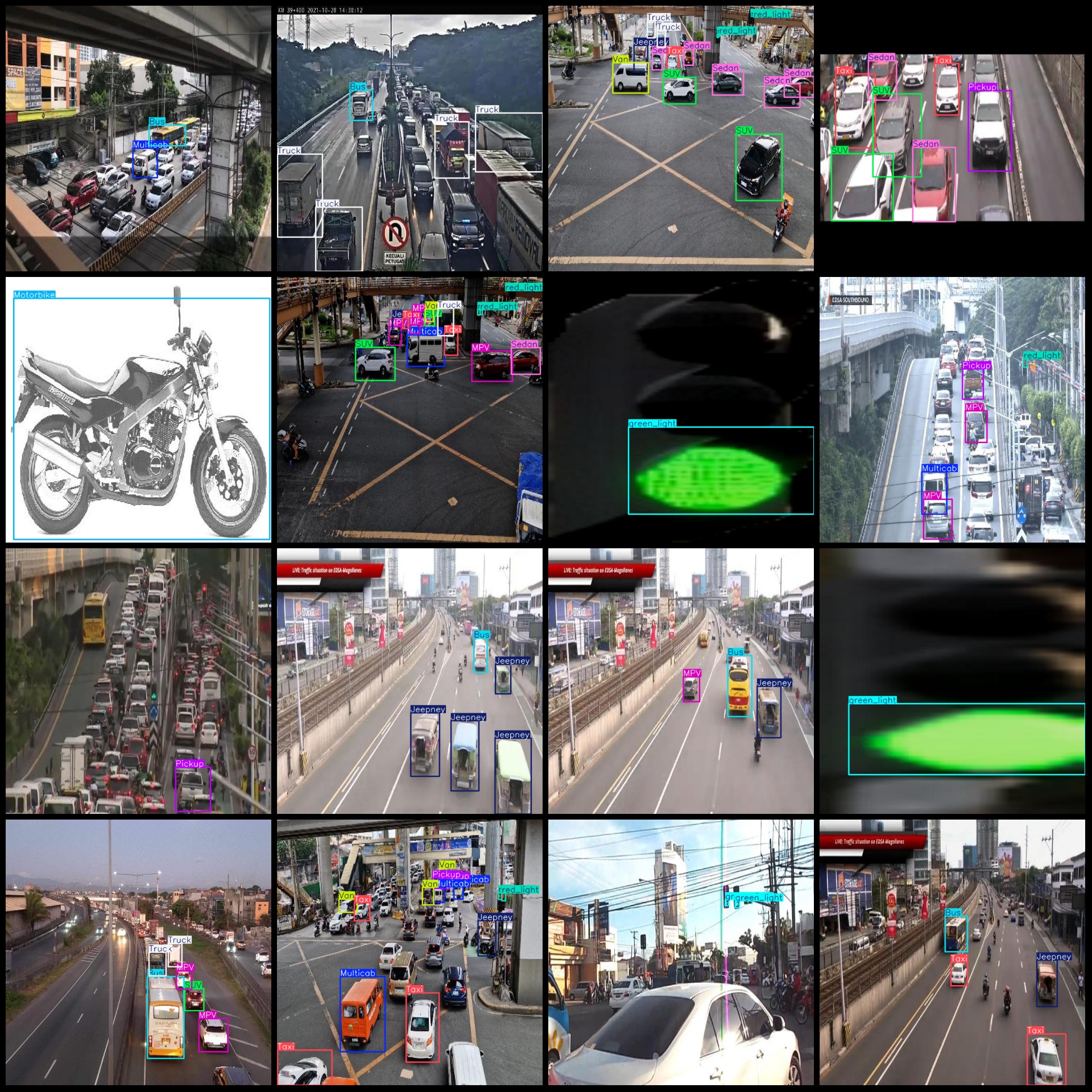 标注类别名称(注意yolo格式类别顺序不和这个对应,而以labels文件夹classes.txt为准):["Bus","Jeepney","MPV","Motorbike","Multicab","Pickup","SUV","Sedan","Taxi","Truck","Van","green_light","red_light"]