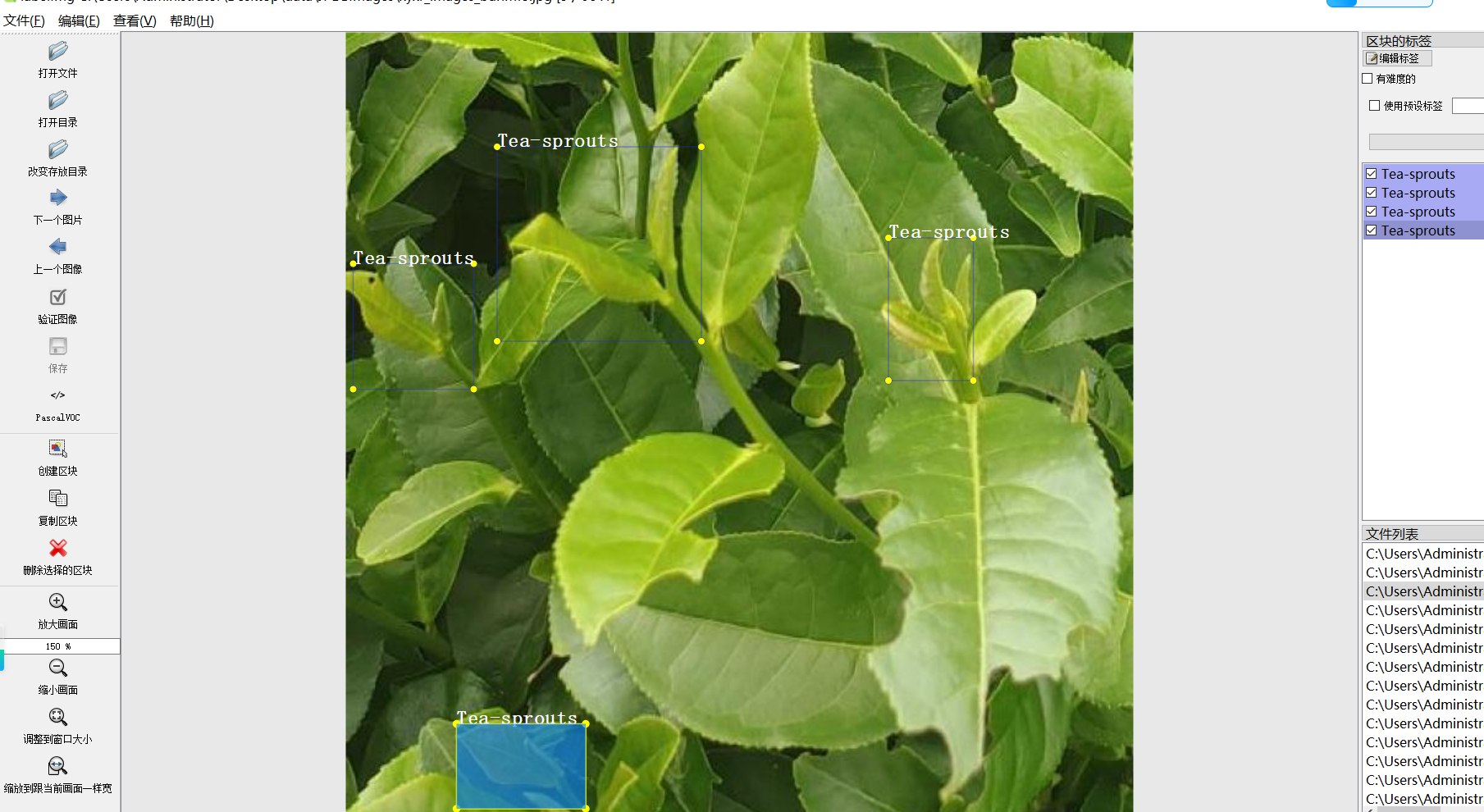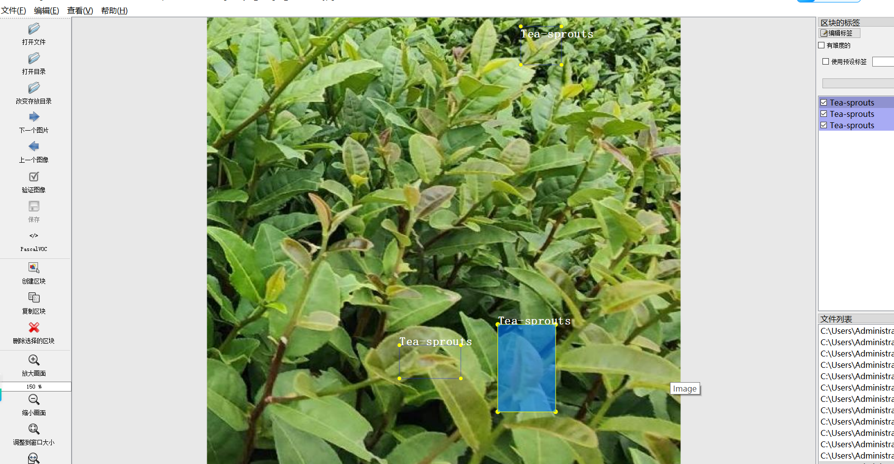 ✅ 标签种类数:1类(Tea-sprouts)✅ 标注类型:矩形边界框(Bounding Box)