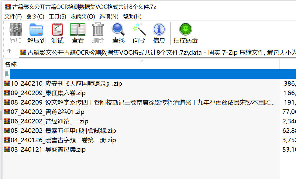 古籍影文公开古籍OCR检测数据集VOC格式共计8个文件,提供百度云盘地址下载