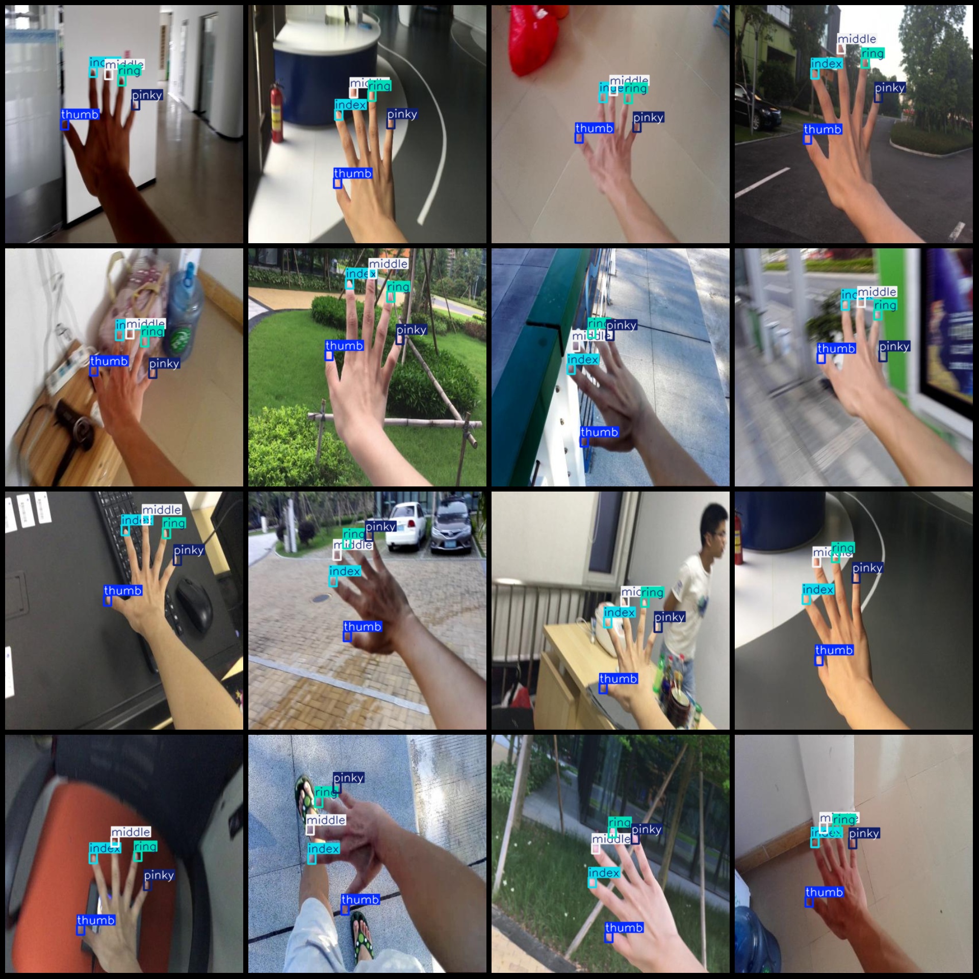 标注类别名称(注意yolo格式类别顺序不和这个对应,而以labels文件夹classes.txt为准):["index","middle","pinky","ring","thumb"]