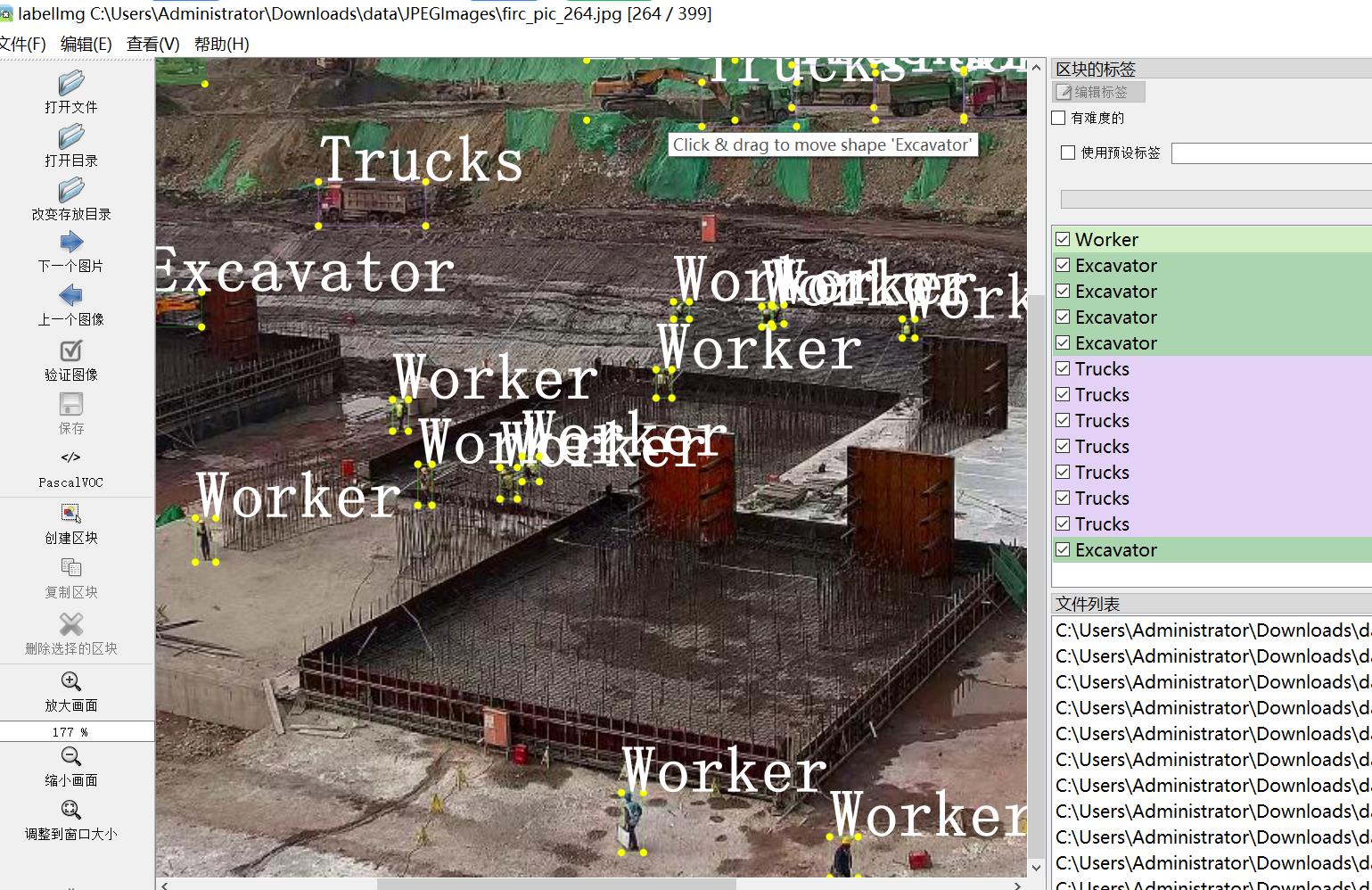 标注类别名称(注意yolo格式类别顺序不和这个对应,而以labels文件夹classes.txt为准):["Excavator","Trucks","Worker"]