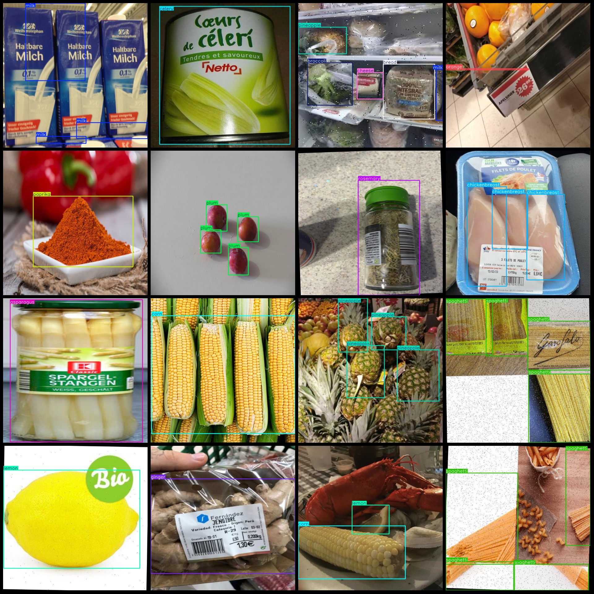 标注类别名称(注意yolo格式类别顺序不和这个对应,而以labels文件夹classes.txt为准):["almond","apple","asparagus","avocado","bakingpowder","bakingsoda","banana","beef","beet","bellpepper","bread","broccoli","butter","cabbage","carrot","cauliflower","celery","cheese","chicken","chickenbreast","cilantro","cinnamon","corn","cream","cucumber","egg","eggplant","flour","garlic","ginger","grapes","grated_cheese","greenonion","jam","ketchup","lemon","lettuce","lime","mango","mayonaise","milk","mustard","nuts","oil","onion","orange","paprika","parsley","pasta","peanutbutter","pear","peas","pineapple","plum","potato","rice","rosemary","salmon","sausage","shrimp","soysauce","spaghetti","spinach","strawberries","sugar","sweetpotato","tomato","tomatosauce","vanilla_extract","watermelon","whole_chicken","yogurt"]