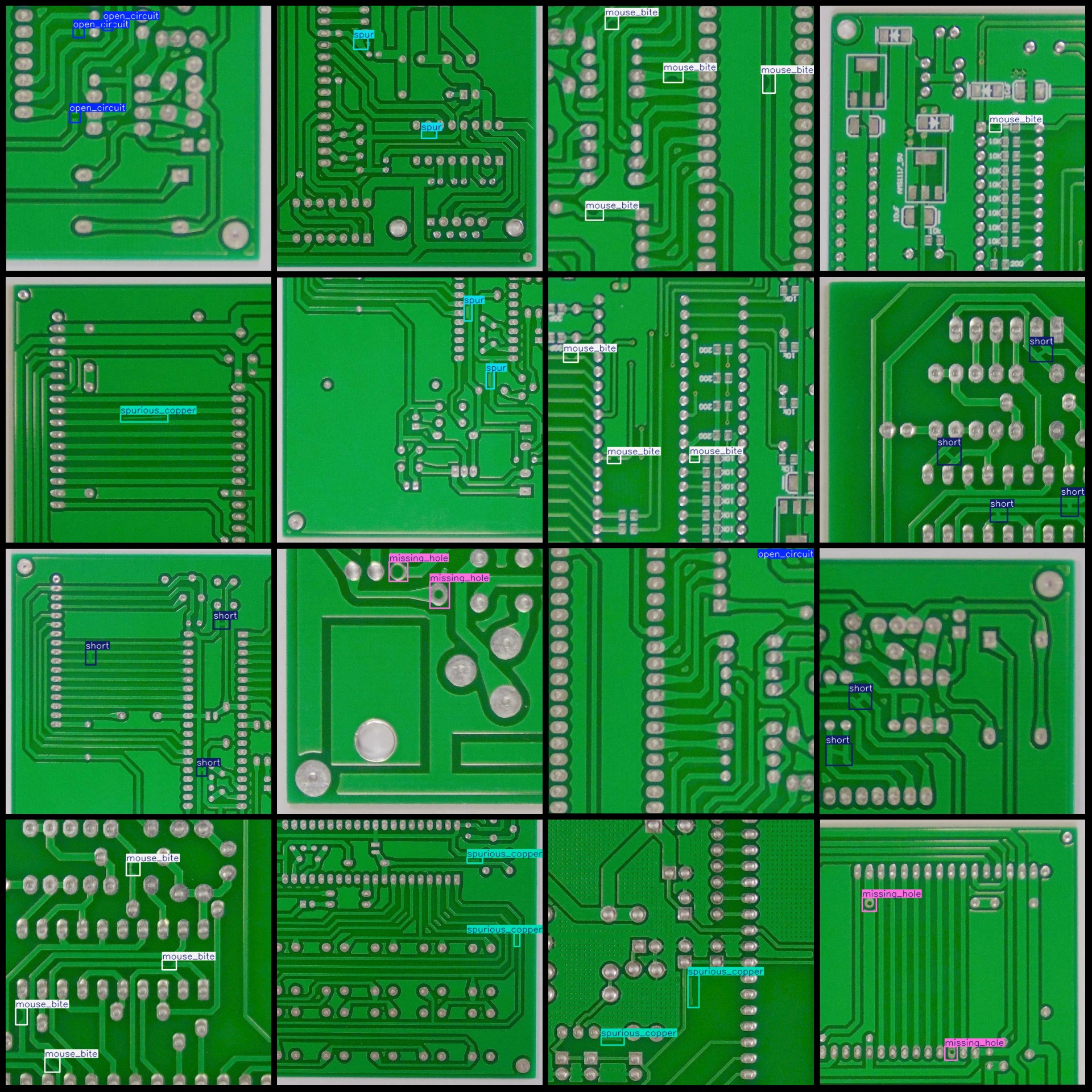 标注类别名称(注意yolo格式类别顺序不和这个对应,而以labels文件夹classes.txt为准):["missing_hole","mouse_bite","open_circuit","short","spur","spurious_copper"]