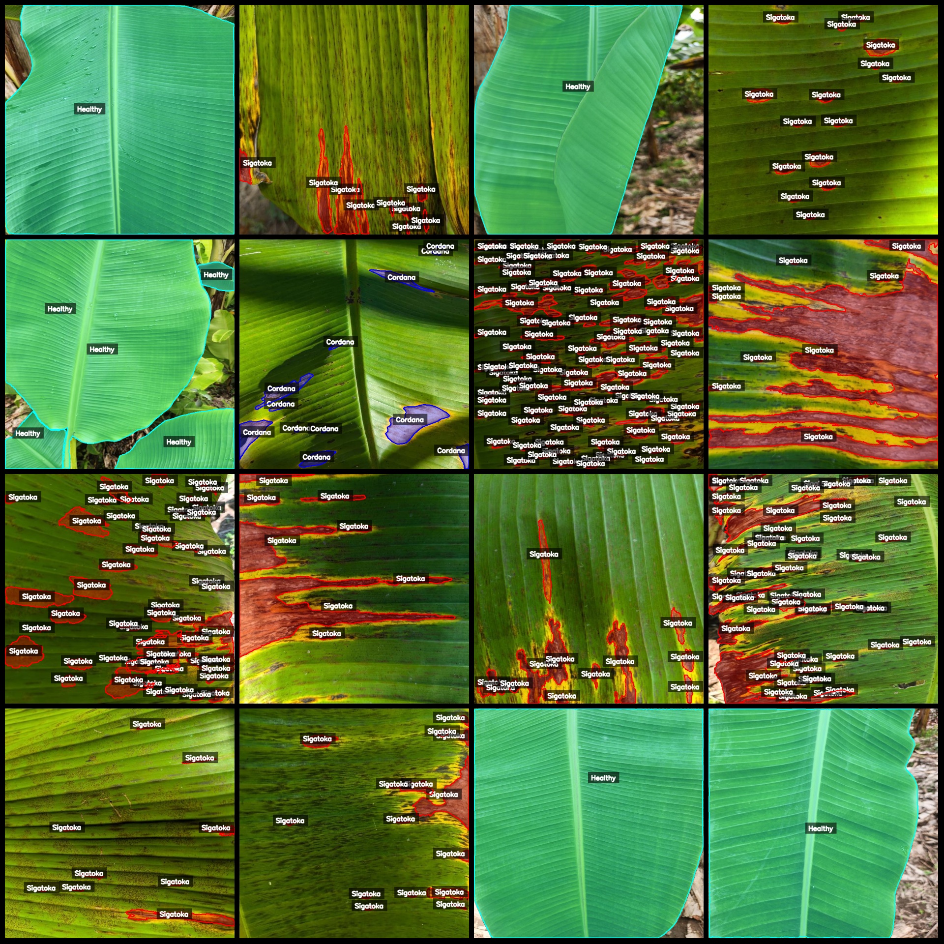 标注类别名称:["Cordana (柯达那叶斑病)", "Healthy (健康叶片)", "Sigatoka (叶斑病)"]