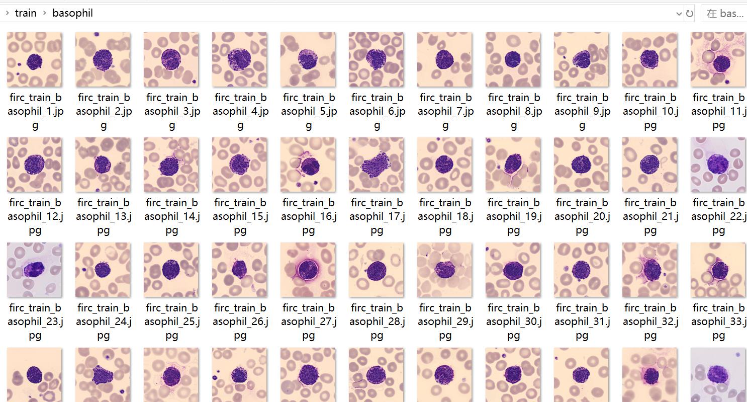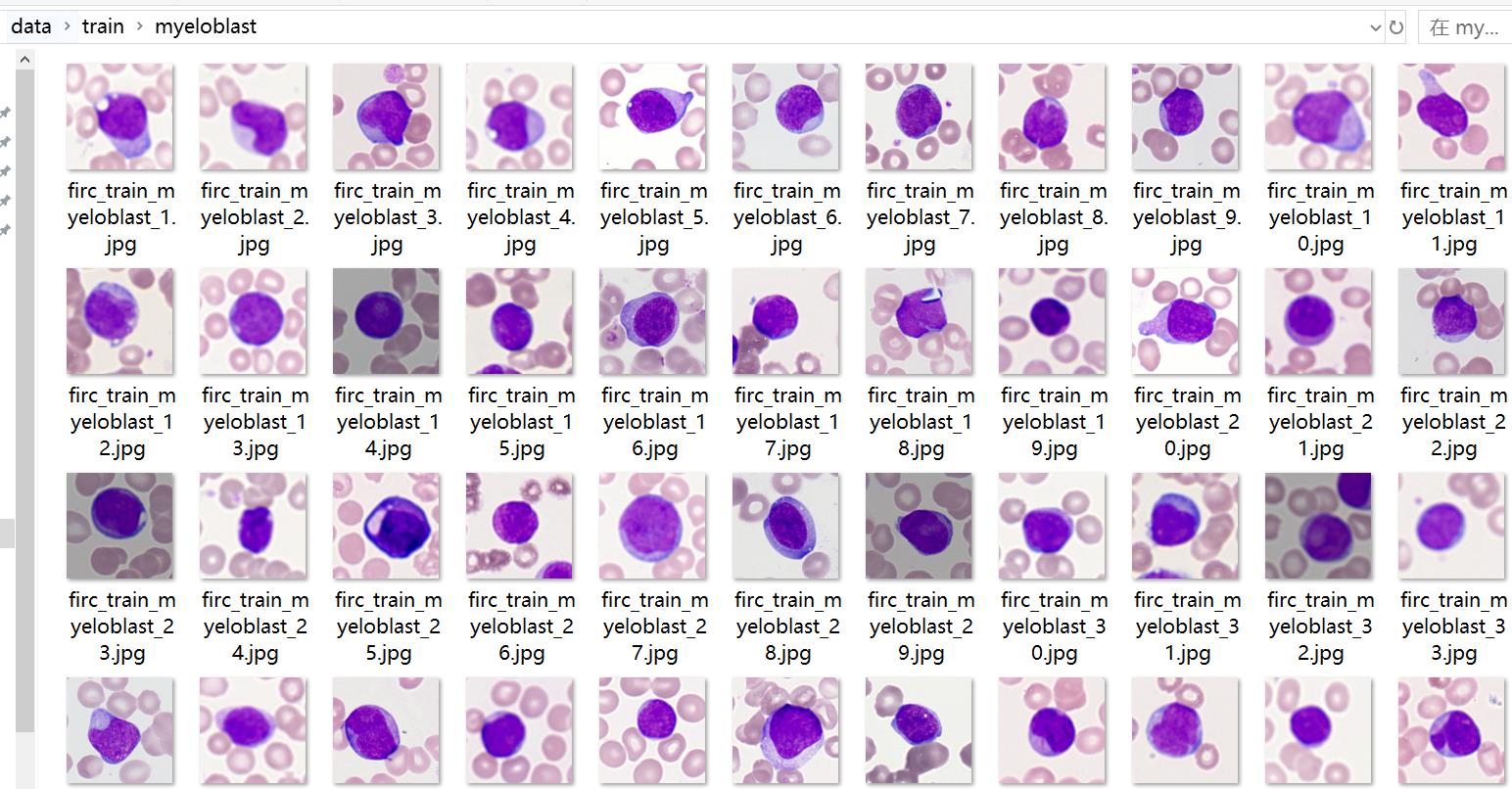 类别名称:['basophil','erythroblast','monocyte','myeloblast','seg_neutrophil']=>['嗜碱性粒细胞','幼红细胞','单核细胞','成髓细胞','分叶核中性粒细胞']