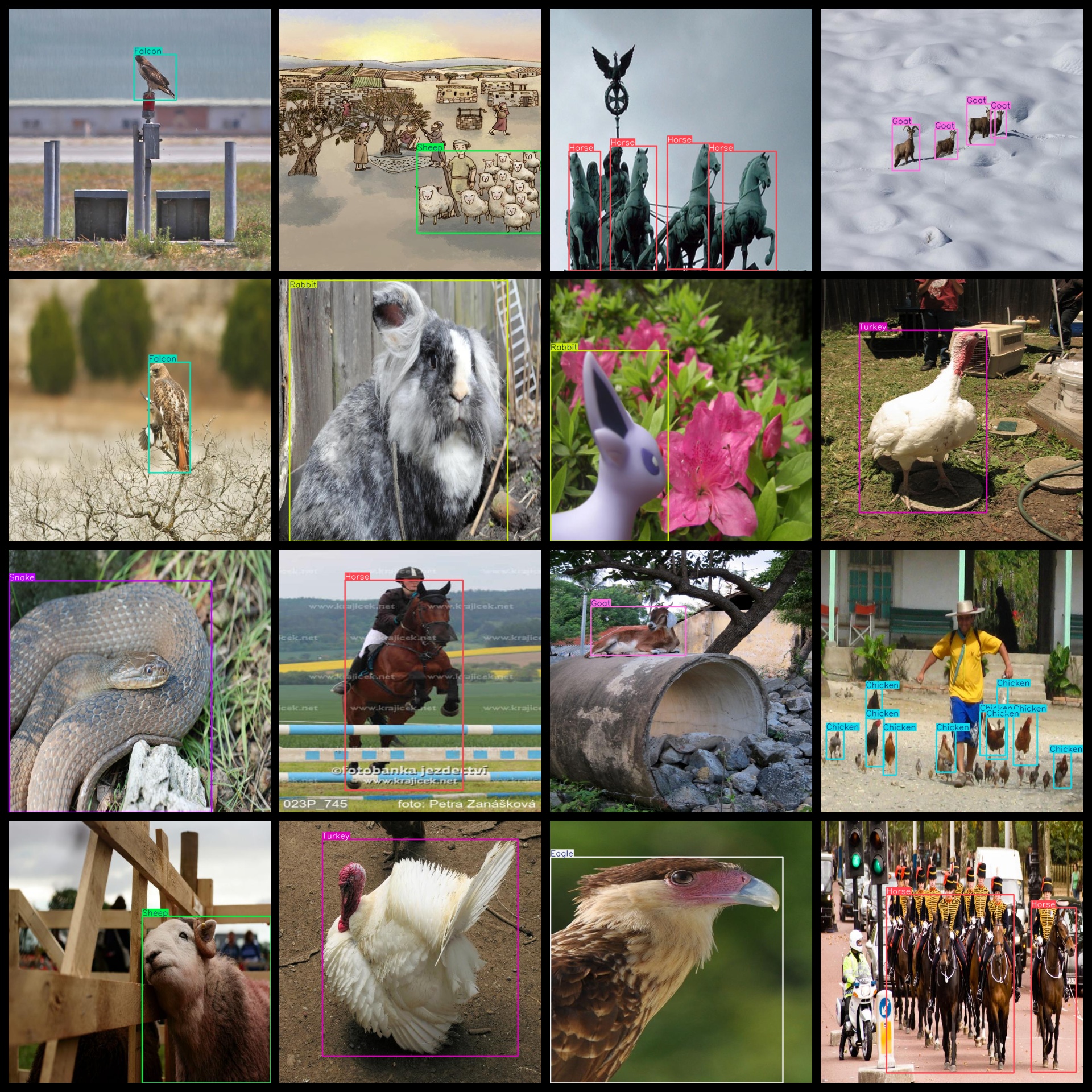 标签中文对照:[“猫”、“鸡”、“鹰”、“猎鹰”、“狐狸”、“山羊”、“马”、“兔子”、“绵羊”、“蛇”、“老虎”、“火鸡”]