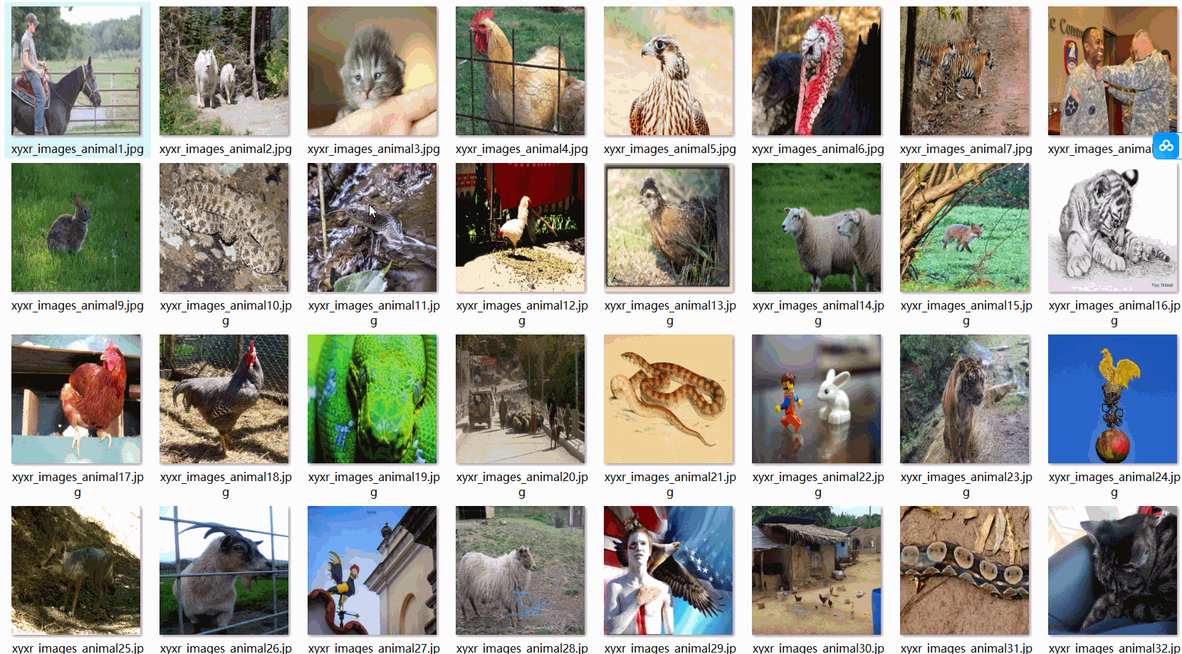 数据集说明:数据集种图片含有极少部分非真实动物图片,如动物手工绘图、印刷、雕像等等,占比极少。