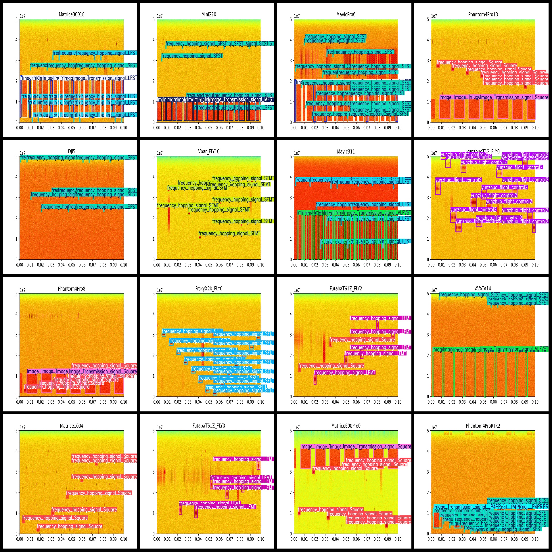 标注类别名称(注意yolo格式类别顺序不和这个对应,而以labels文件夹classes.txt为准):["Image_Transmission_signal_LFST","Image_Transmission_signal_LFVST","Image_Transmission_signal_MFST","Image_Transmission_signal_Square","Image_Transmission_signal_VLFVST","Image_Transmission_signal__P4PR","Tarains_flight_control","frequency_hopping_signal_LFMT","frequency_hopping_signal_LFST","frequency_hopping_signal_SFLT","frequency_hopping_signal_SFMT","frequency_hopping_signal_SFST","frequency_hopping_signal_Square","frequency_hopping_signal_VLFMT","yunzhuo_flight_control2"]