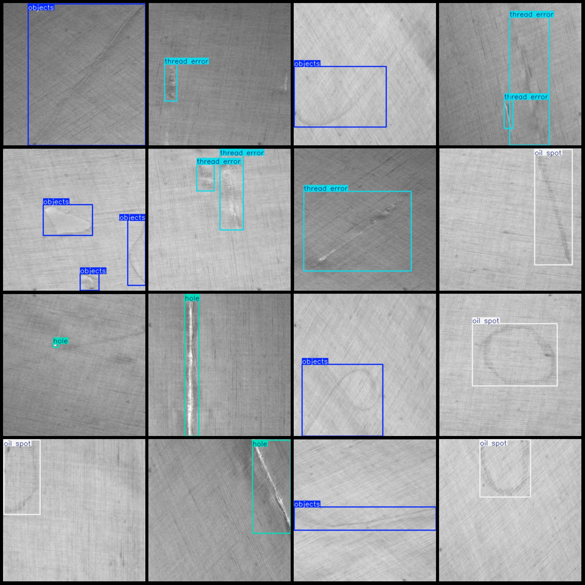 标注类别名称(注意yolo格式类别顺序不和这个对应,而以labels文件夹classes.txt为准):["hole","objects","oil spot","thread error"]