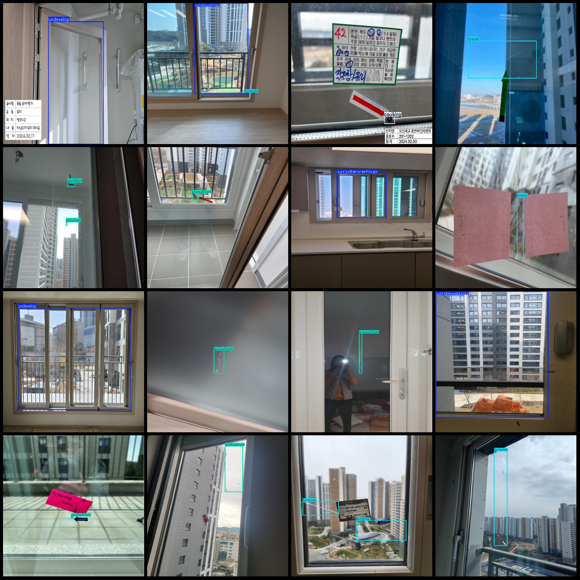 标注类别名称(注意yolo格式类别顺序不和这个对应,而以labels文件夹classes.txt为准):["break","caulking","frostiness","polution","undevelop"]