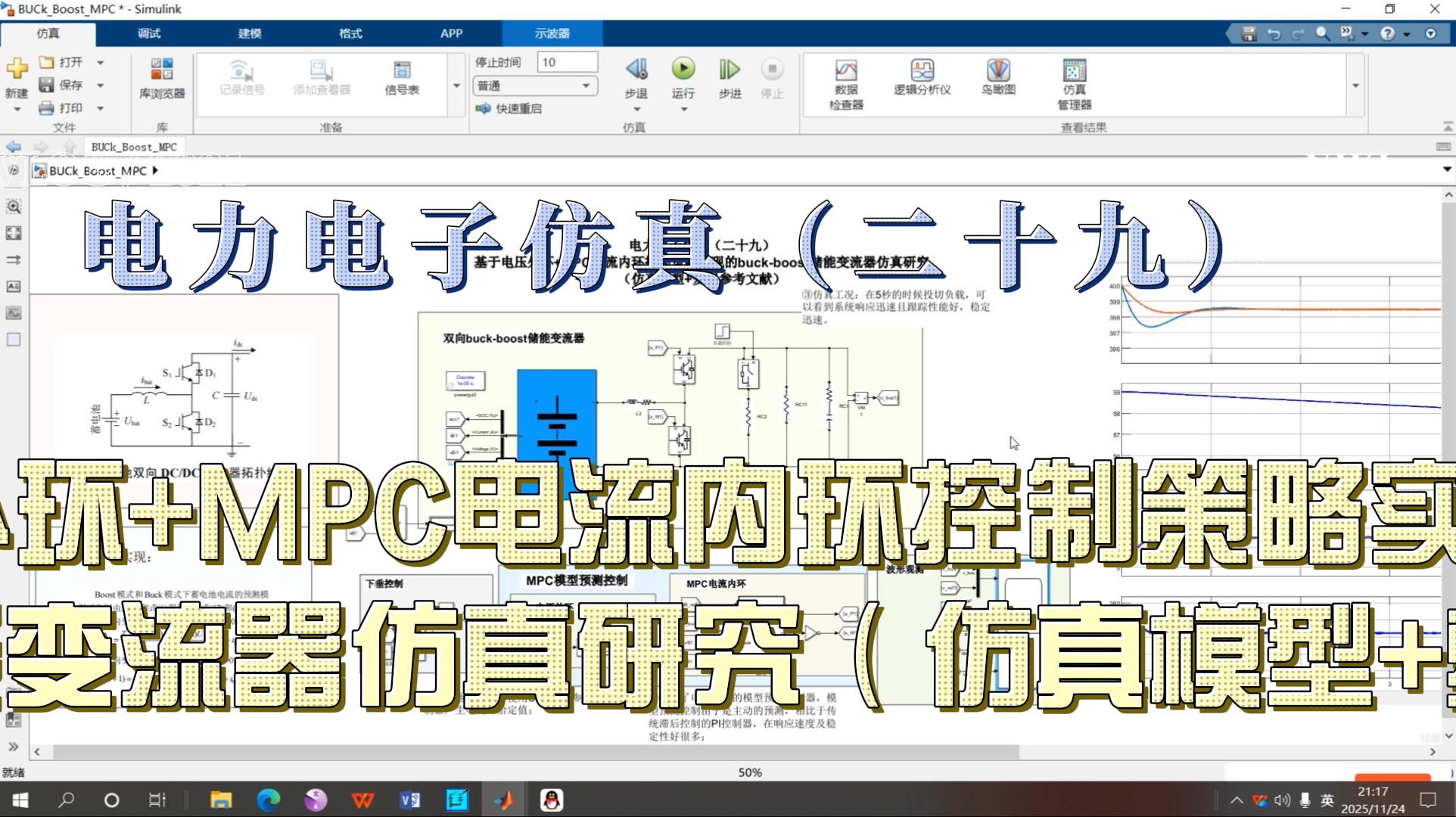 电力电子仿真(二十九)基于电压外环+MPC电流内环控制策略实现的双向buck-boost储能变流器仿真研究(仿真模型+复现参考文献)