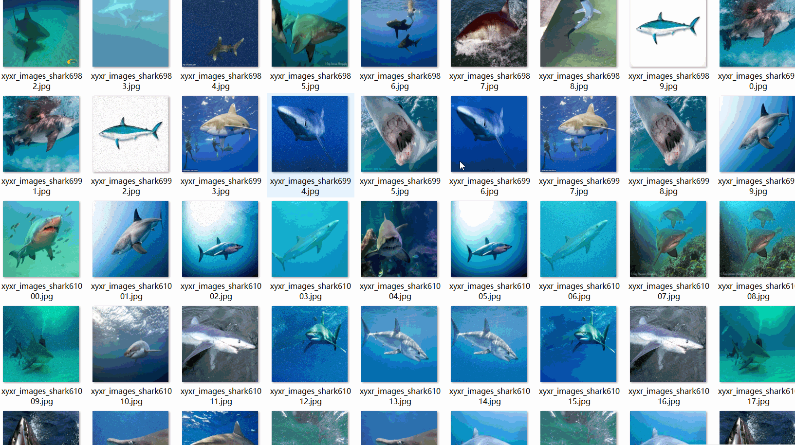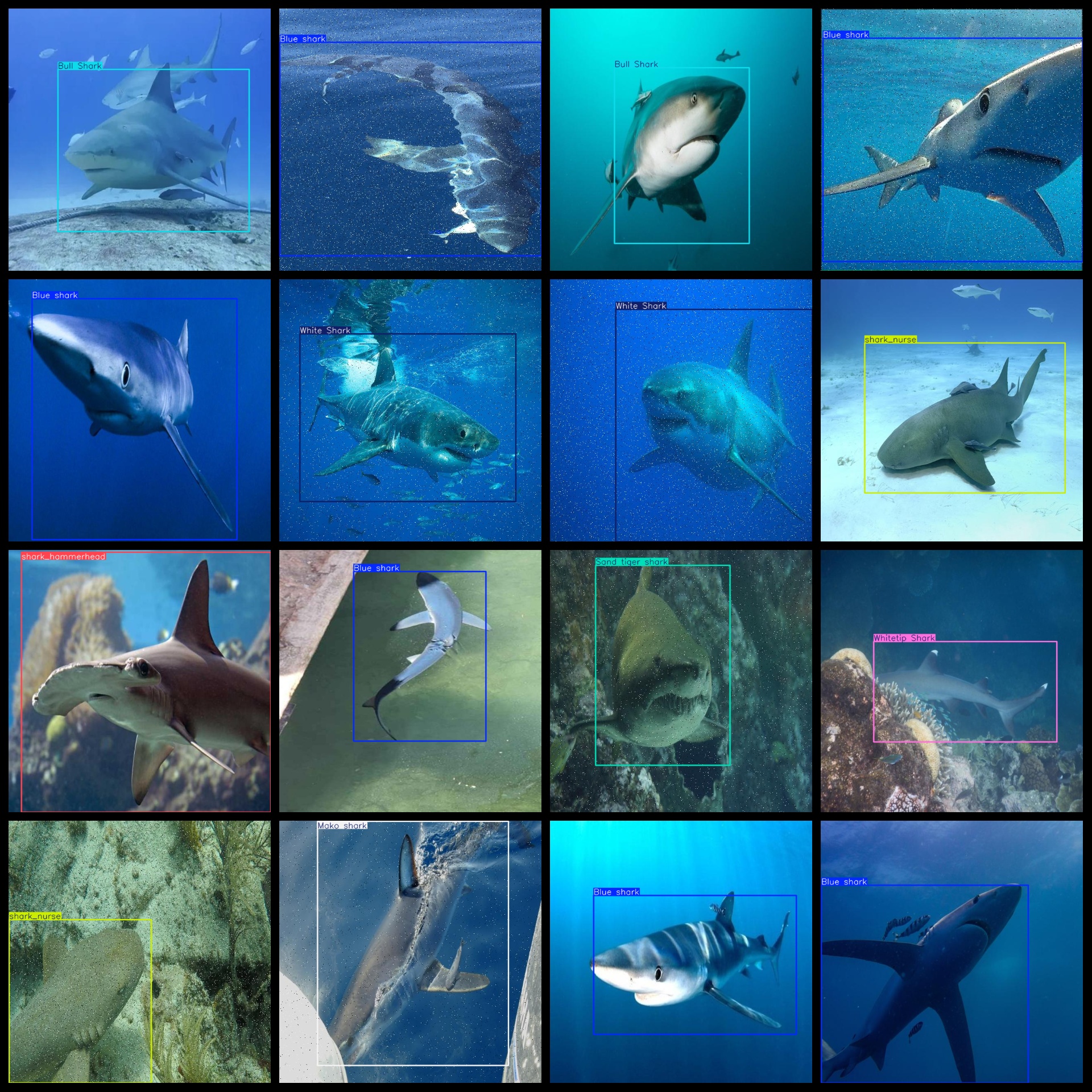 标签名称:["Blue shark","Bull Shark","Mako shark","Sand tiger shark","White Shark","Whitetip Shark","shark_hammerhead","shark_nurse","shark_tiger","shark_whale"]