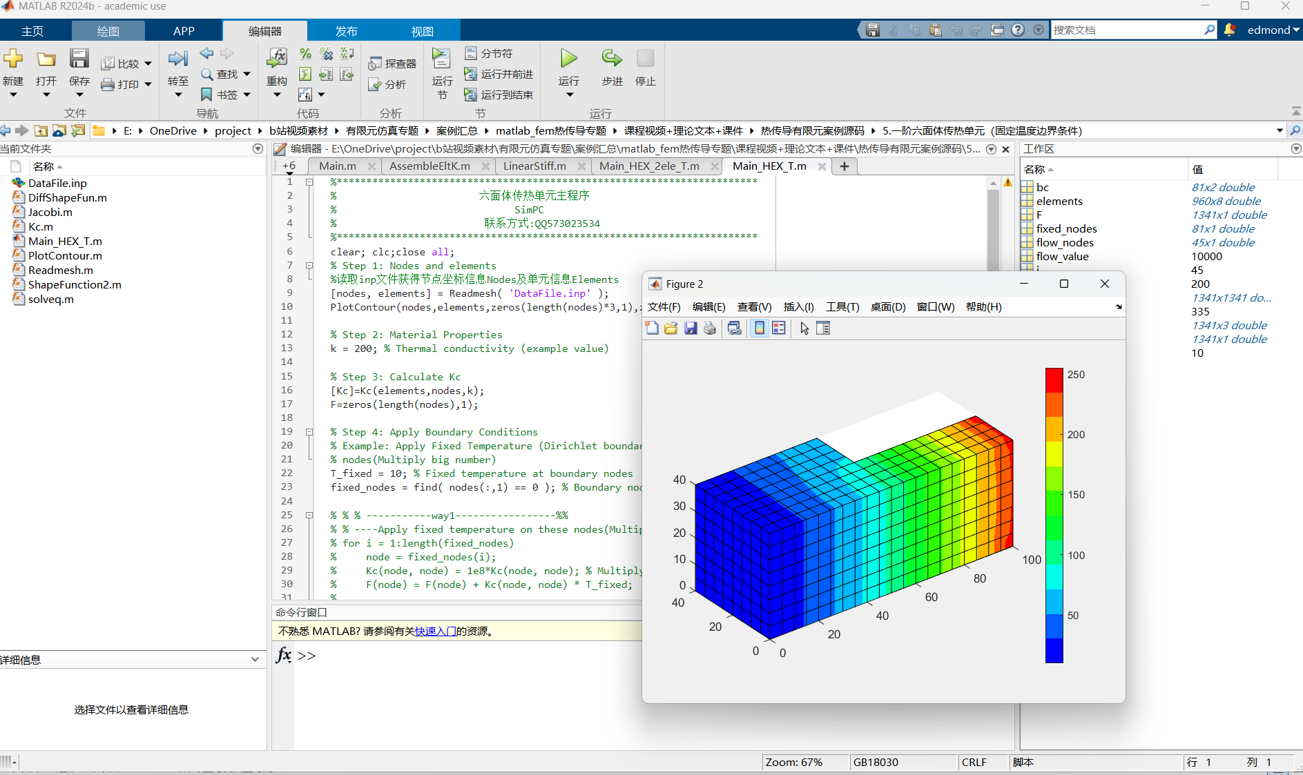 本代码案例讲解收录在《热传导问题Matlab有限元编程》精品课,B站试看链接如下: