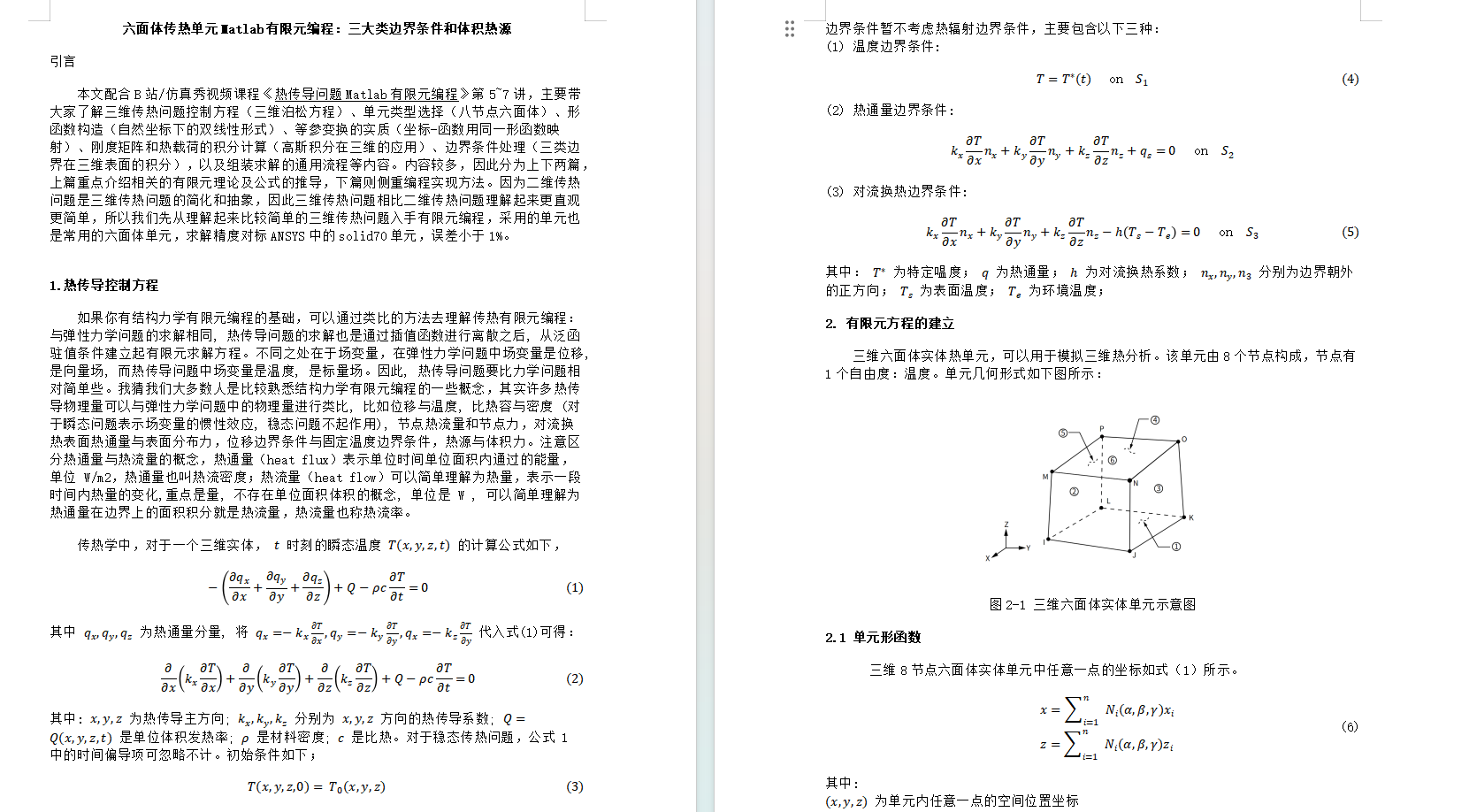 5.1 六面体传热单元有限元基本理论/Hex8/稳态瞬态传热/热固耦合/热传导矩阵/固定温度边界/热通量/热流密度/对流换热/体积热源/平面热传导/三维热传导哔哩哔哩bilibili