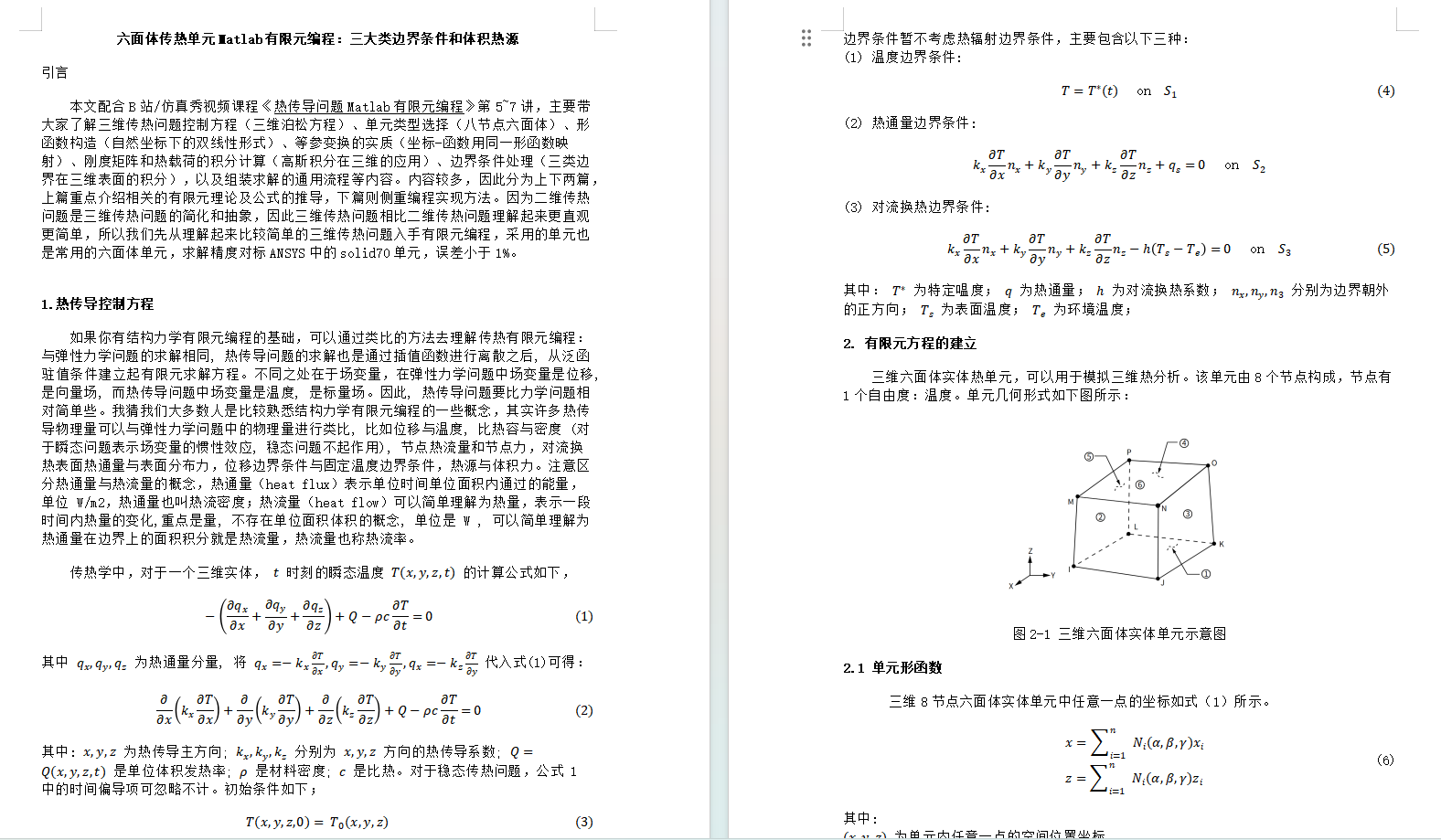 6.1热通量和对流换热边界条件的有限元编程/Hex8/稳态瞬态传热/热固耦合/热传导矩阵/固定温度边界/热通量/热流密度/对流换热/体积热源/平面热传导/三维_哔哩哔哩_bilibili哔哩哔哩
