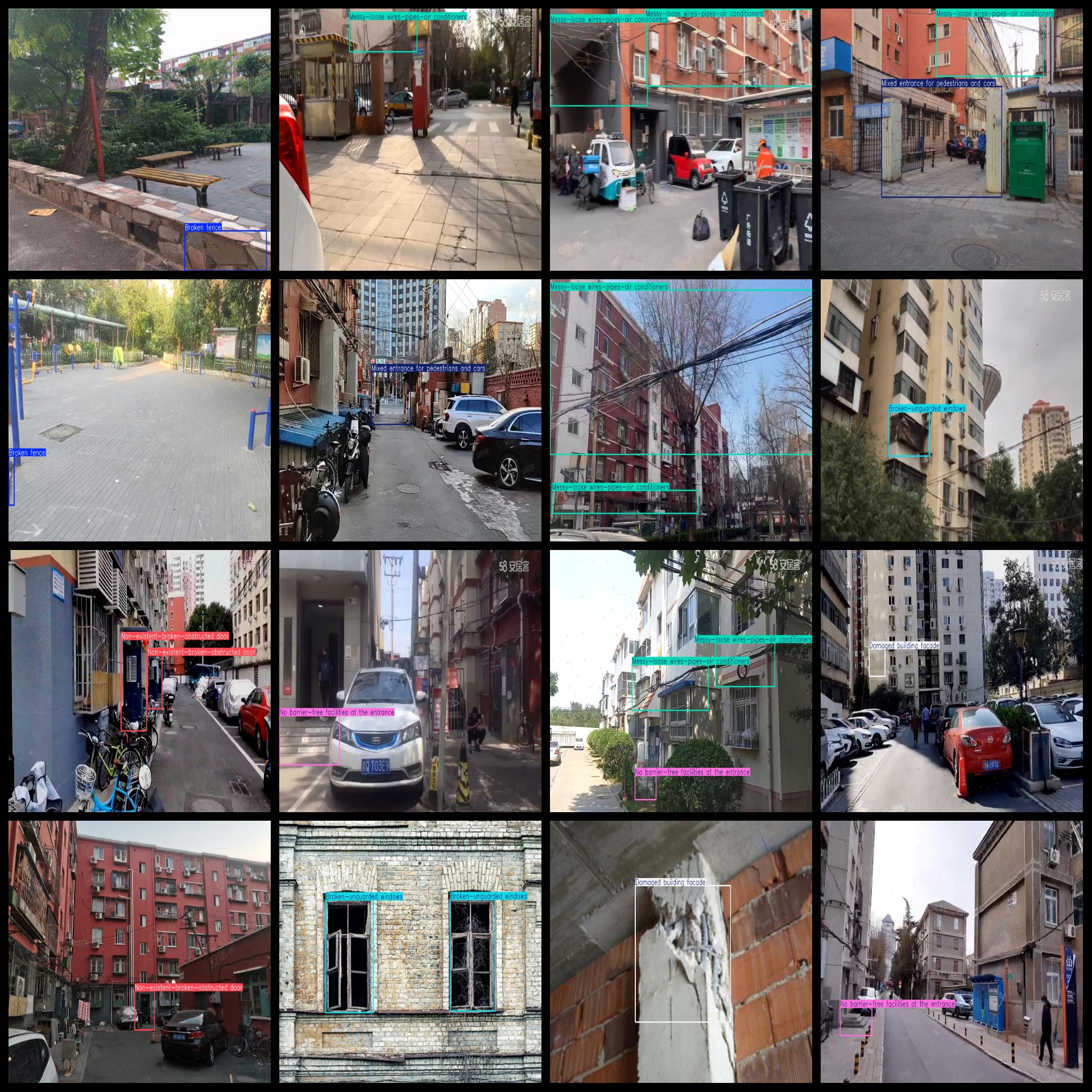 标签中文对照:【破损围栏、破损未加防护的窗户、损坏的建筑外立面、杂乱松动的电线-管道-空调设备、人车混行的入口、入口处无无障碍设施、不存在-破损-堵塞的门】