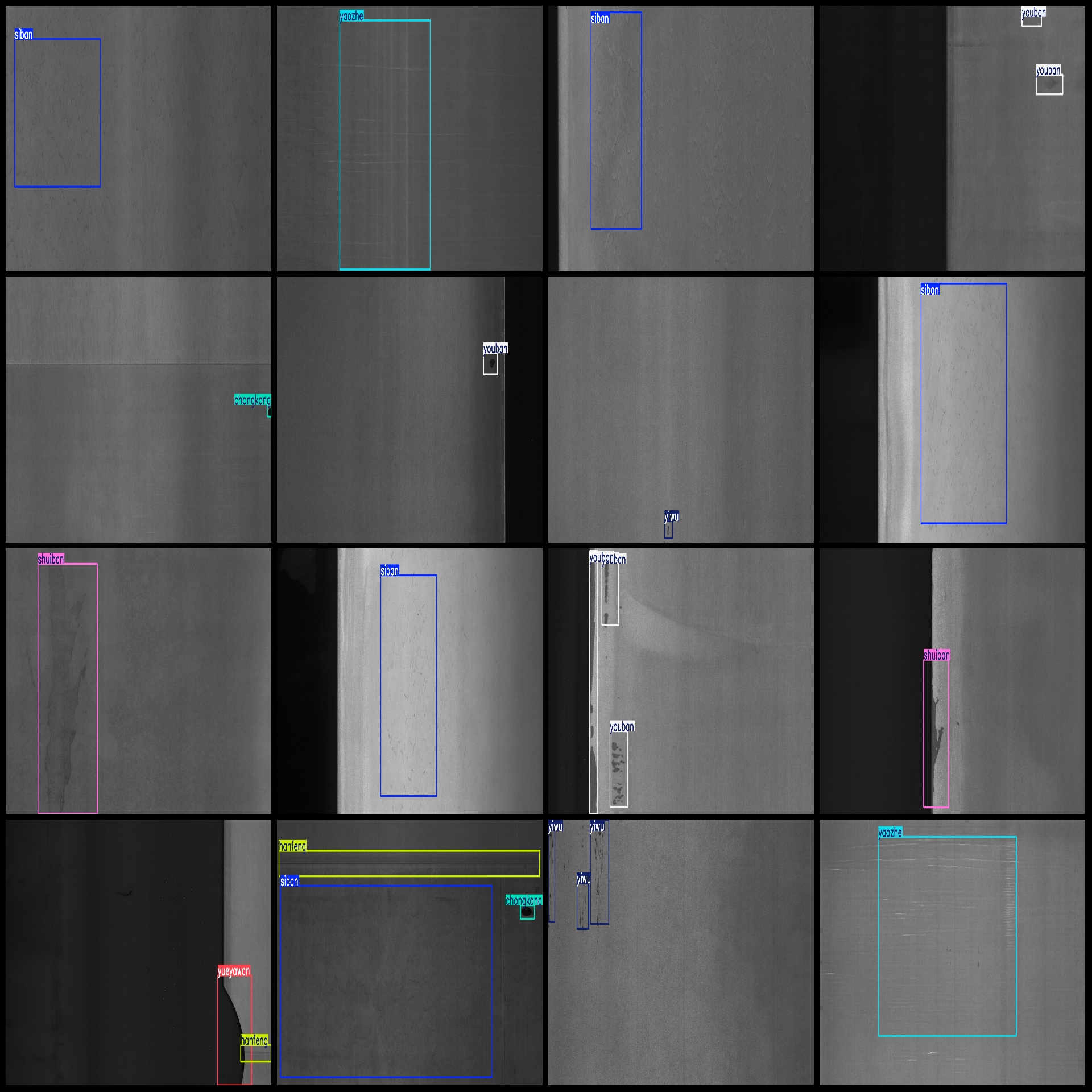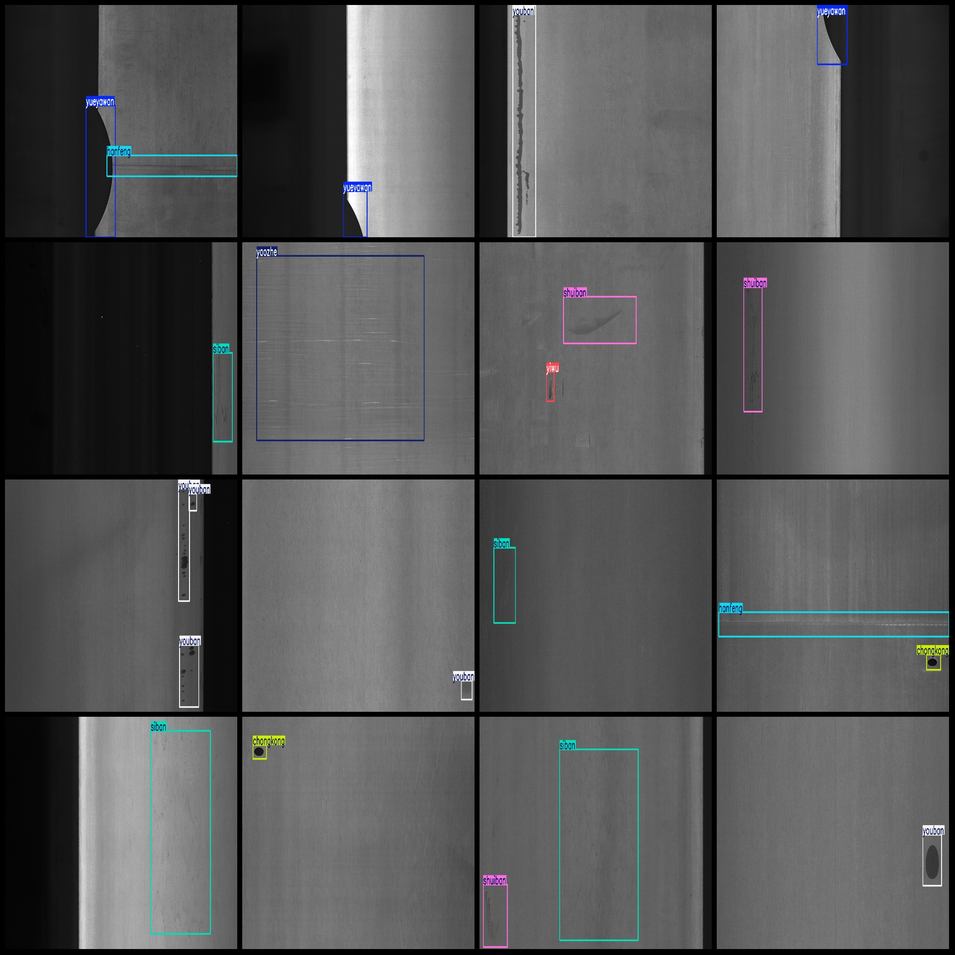 标注类别名称(注意yolo格式类别顺序不和这个对应,而以labels文件夹classes.txt为准):["chongkong","hanfeng","shuiban","siban","yahen","yaozhe","yiwu","youban","yueyawan","zhehen"]