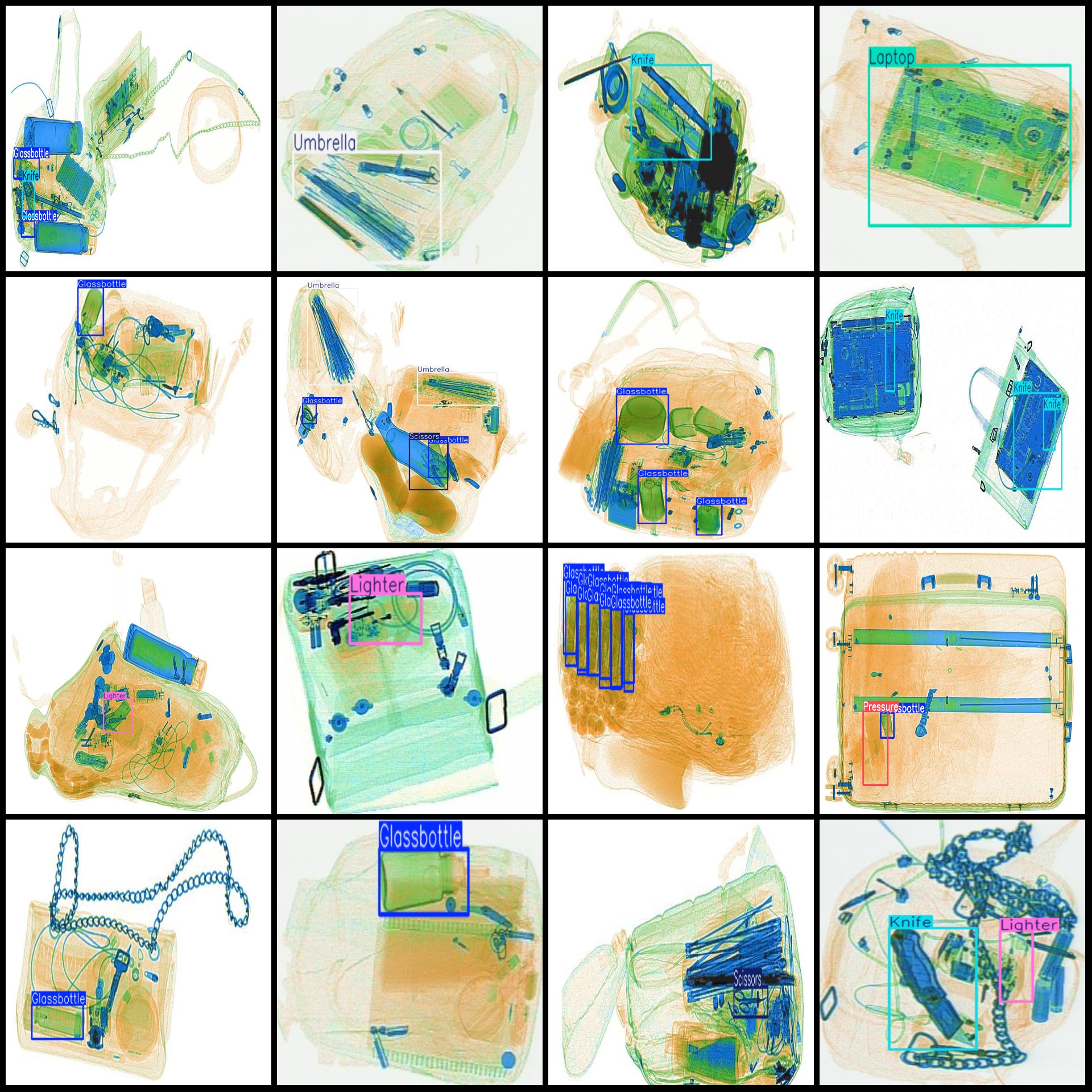 标注类别名称(注意yolo格式类别顺序不和这个对应,而以labels文件夹classes.txt为准):["Glassbottle","Handcuffs","Knife","Laptop","Lighter","Metalcup","Powerbank","Pressure","Scissors","Slingshot","Tongs","Umbrella","Zippooil"]