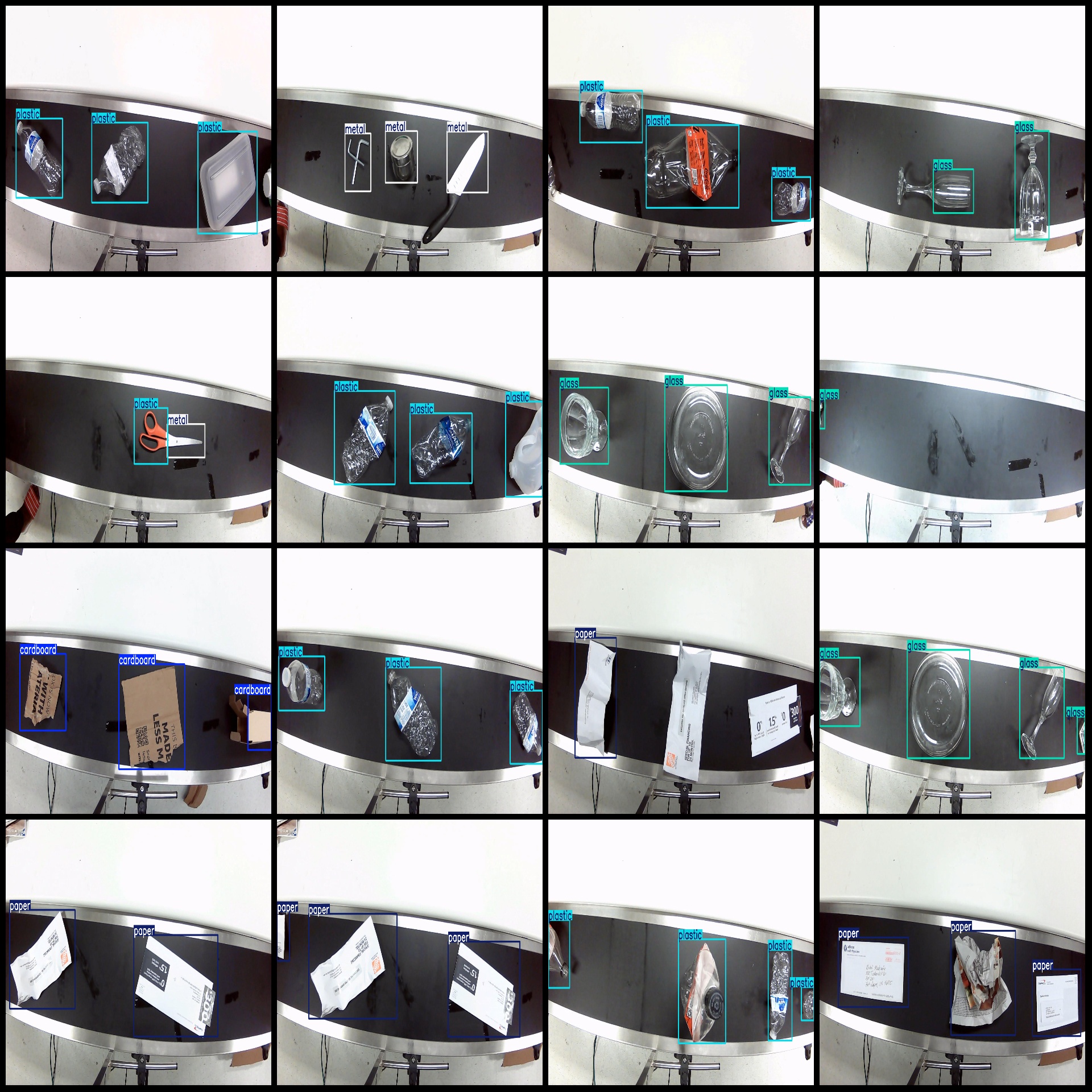 标注类别名称(注意yolo格式类别顺序不和这个对应,而以labels文件夹classes.txt为准):["cardboard","glass","metal","paper","plastic"]
