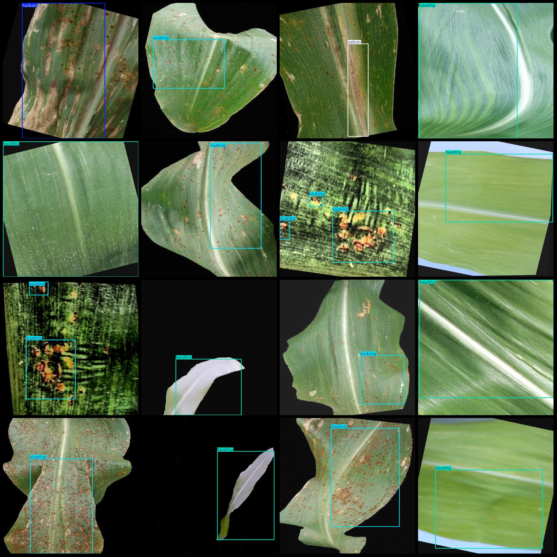标注类别名称(注意yolo格式类别顺序不和这个对应,而以labels文件夹classes.txt为准):["healthy","huiban","xiubing","yeban"]
