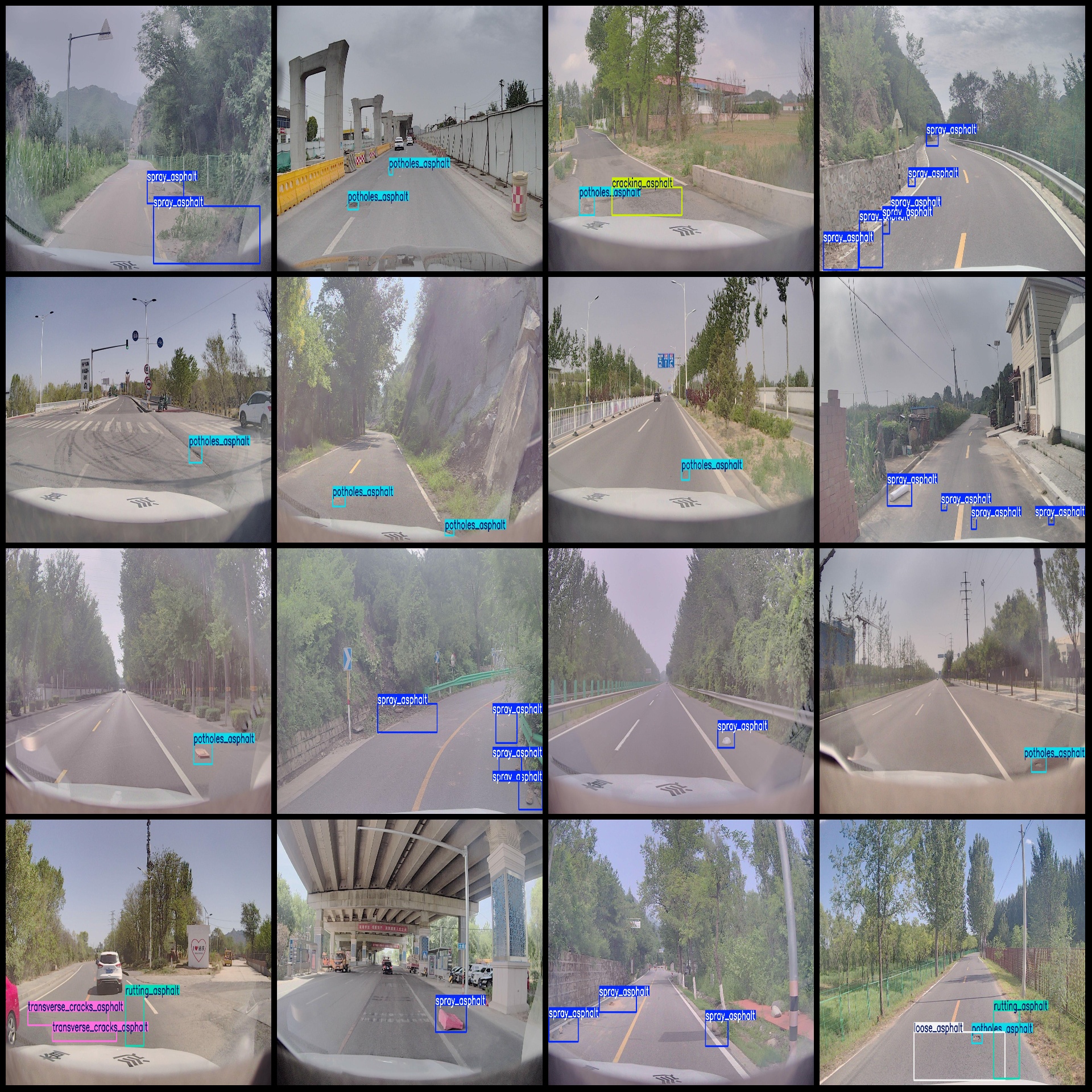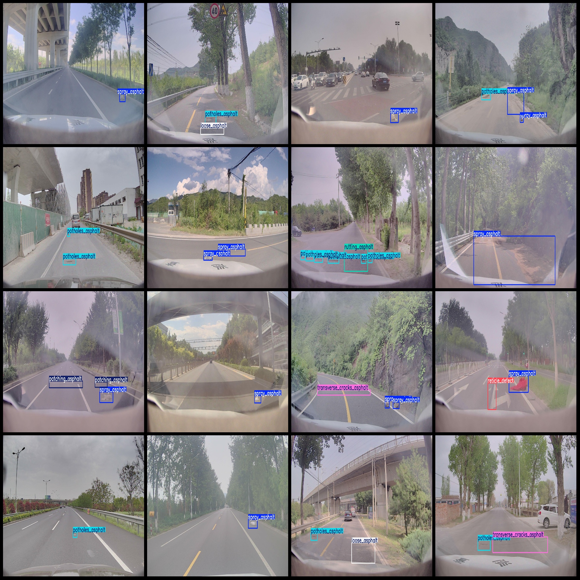 标注类别名称(注意yolo格式类别顺序不和这个对应,而以labels文件夹classes.txt为准):["arching_concrete","barrier_damage","block_cracks_asphalt","broken_board_cement","crack_cement","cracking_asphalt","edge_spalling_cement","joint_material_damage_cement","longitudinal_cracks_asphalt","loose_asphalt","marker_defects","patching_asphalt","potholes_asphalt","potholes_concrete","reticle_defect","rutting_asphalt","spray_asphalt","subsidence_asphalt","transverse_cracks_asphalt","wave_congestion_asphalt"]