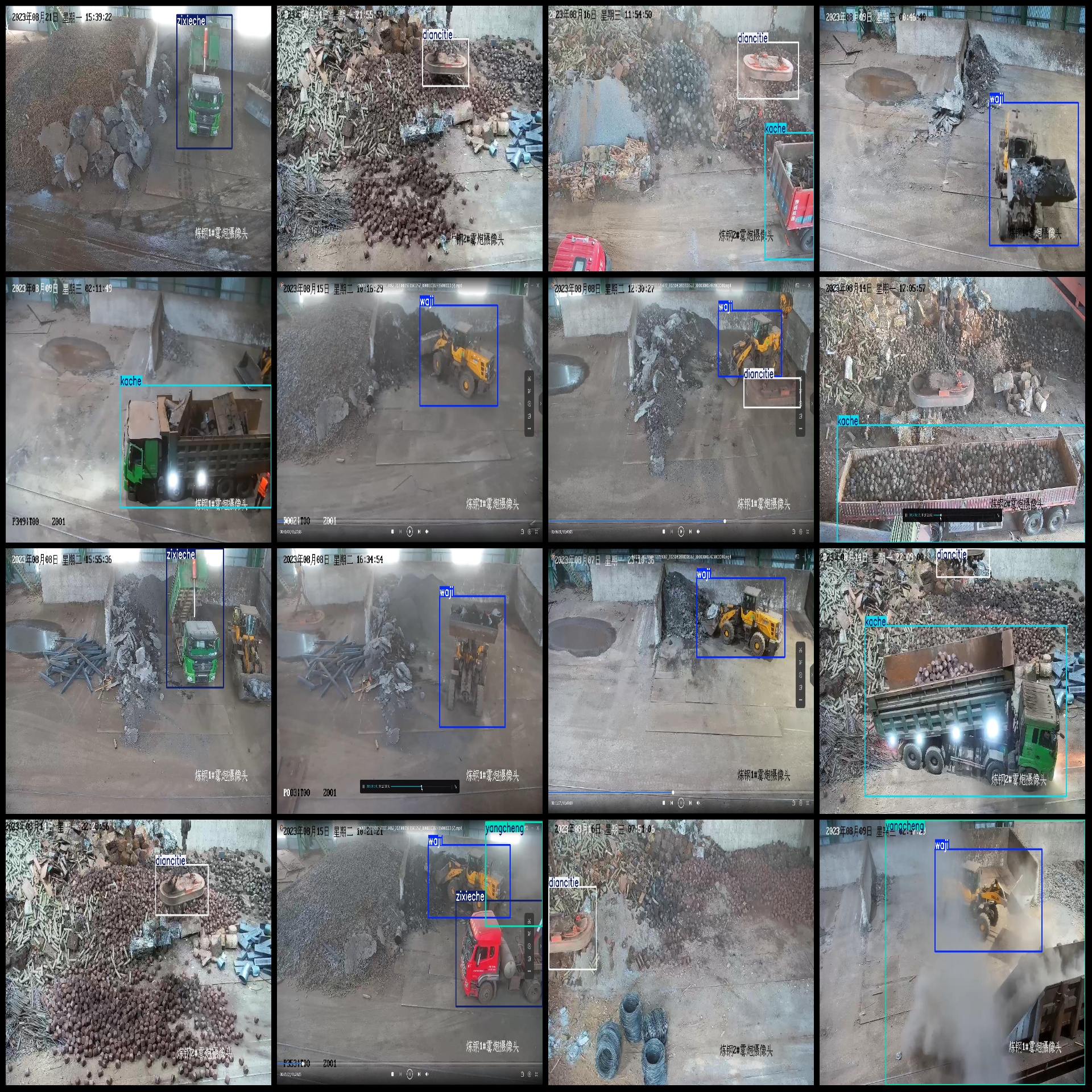 标注类别名称(注意yolo格式类别顺序不和这个对应,而以labels文件夹classes.txt为准):["diancitie","kache","waji","yangcheng","zixieche"]