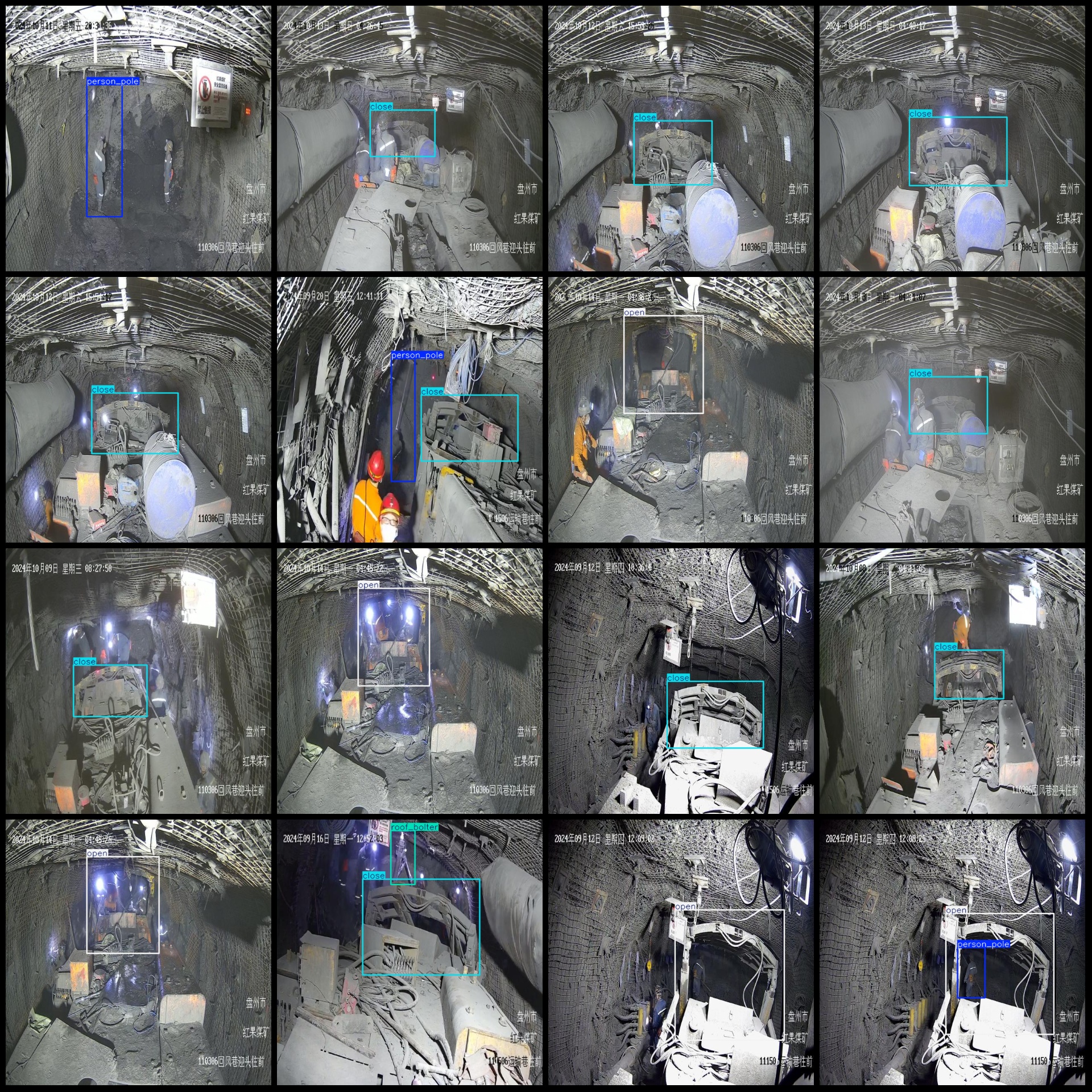 标注类别名称(注意yolo格式类别顺序不和这个对应,而以labels文件夹classes.txt为准):["close","open","person_pole","roof_bolter"]