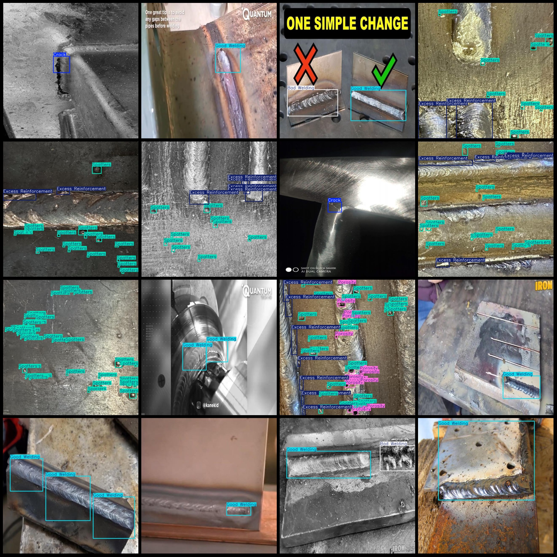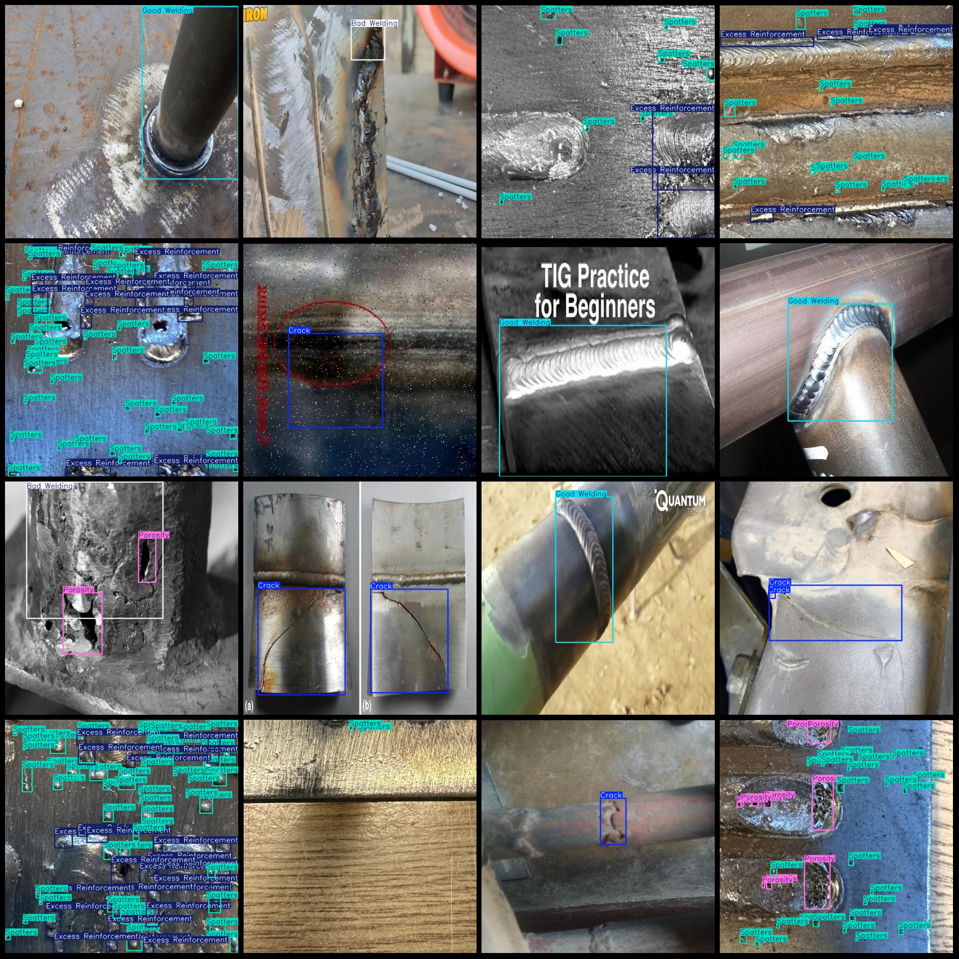 标注类别名称(注意yolo格式类别顺序不和这个对应,而以labels文件夹classes.txt为准):["Bad Welding","Crack","Excess Reinforcement","Good Welding","Porosity","Spatters"]