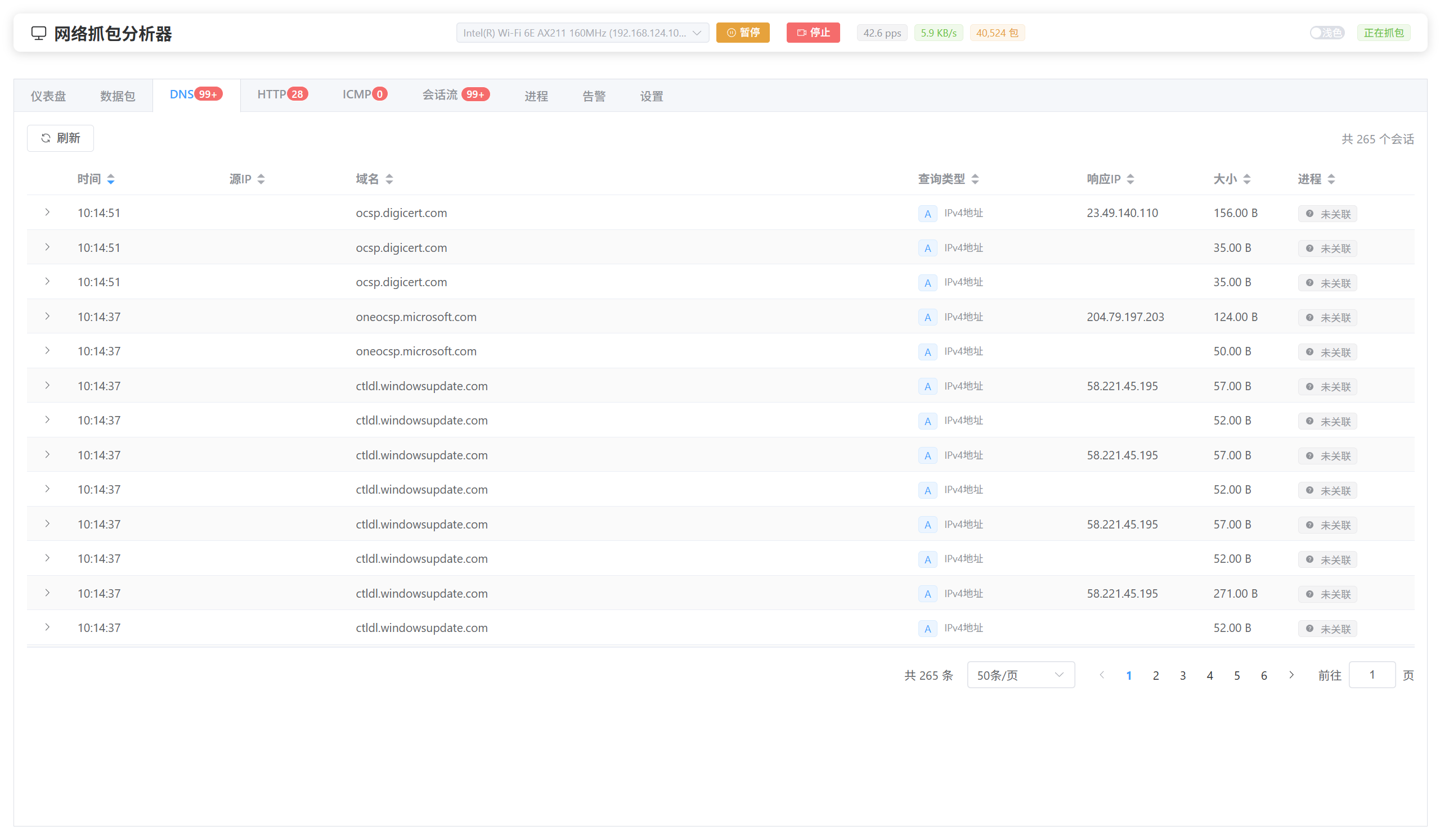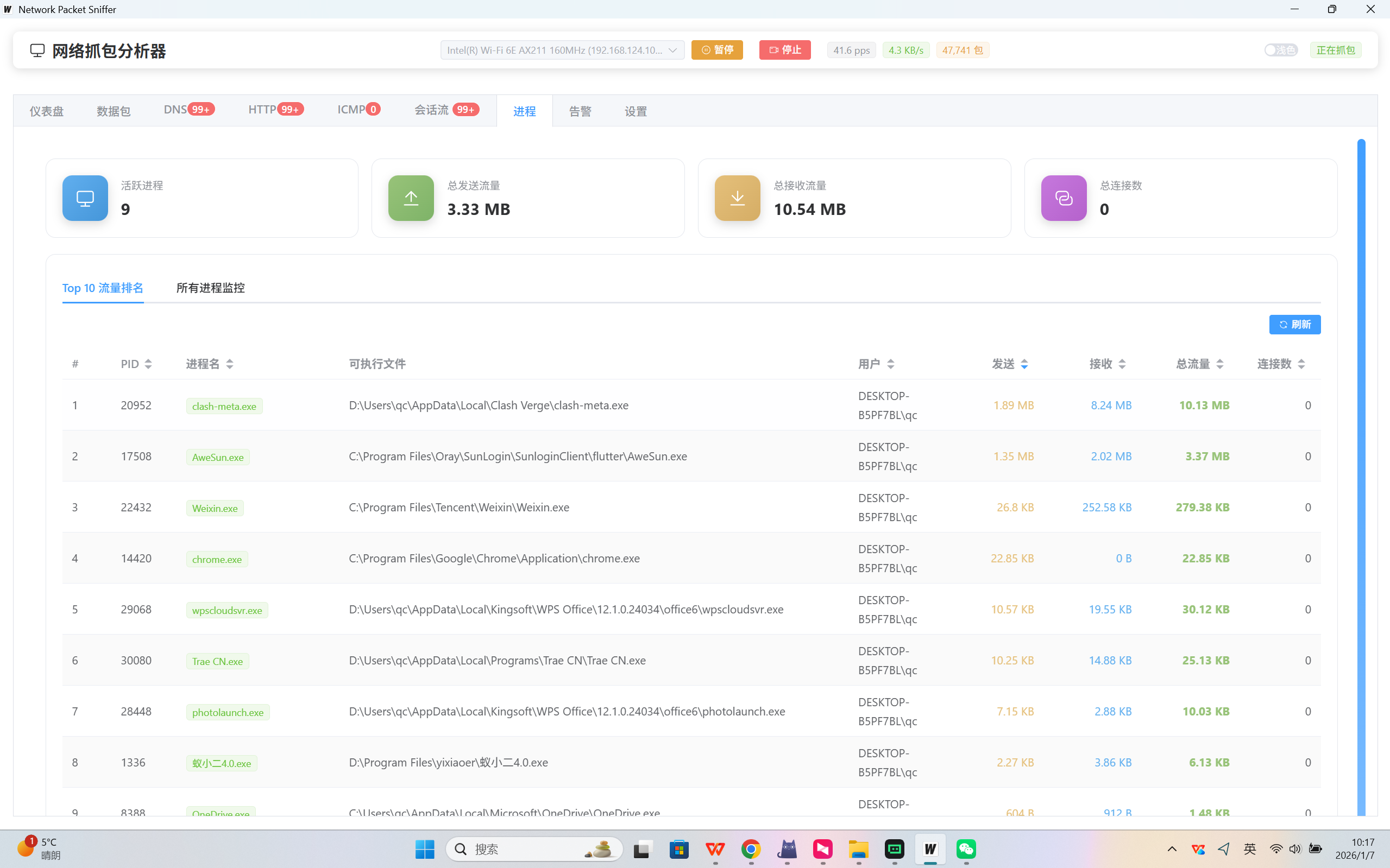 - 🎯 精准进程关联 - 自动将网络流量与进程绑定,支持主流操作系统