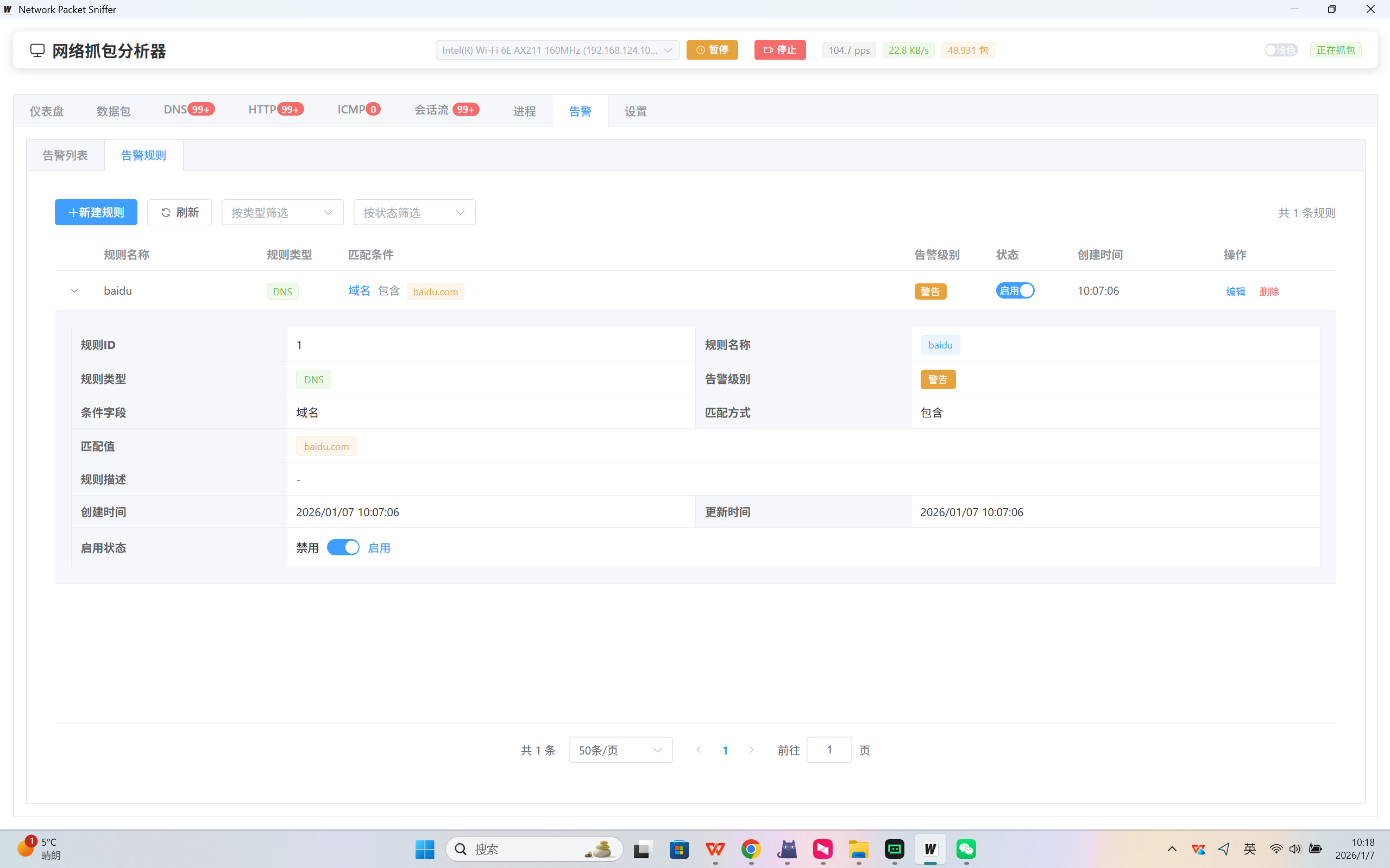 - 💾 数据持久化 - SQLite 存储 + PCAP 文件归档,支持历史回溯