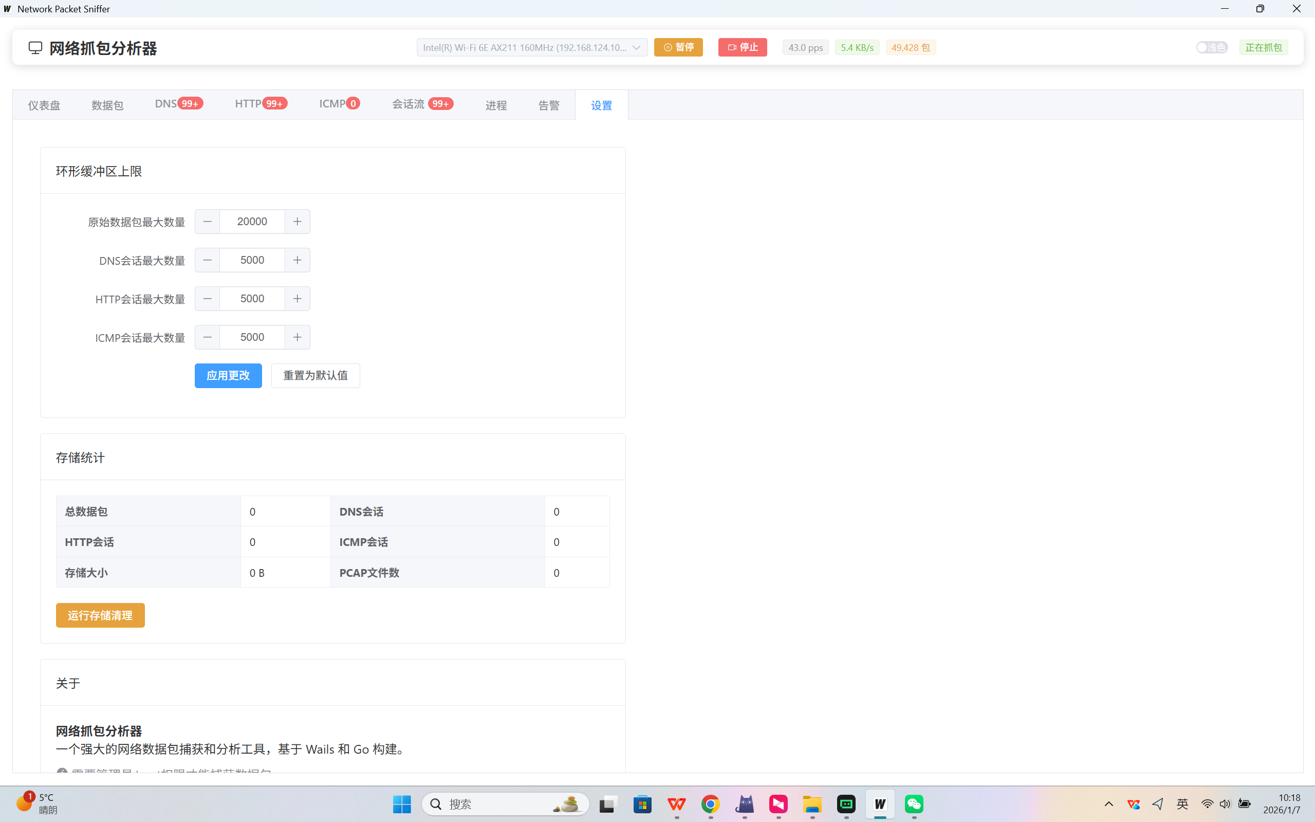 一款基于 Wails框架开发的跨平台网络流量监控与威胁检测工具,集成了数据包分析、进程关联、会话流统计、威胁情报检测、地理位置可视化等功能于一体。