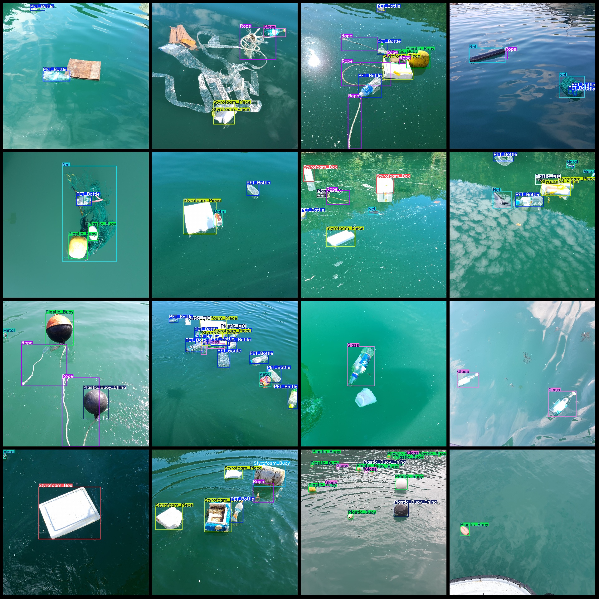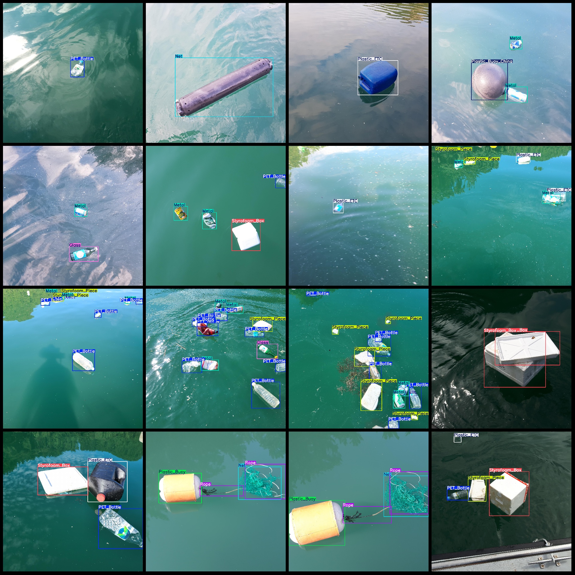 标注类别名称(注意yolo格式类别顺序不和这个对应,而以labels文件夹classes.txt为准):["Glass","Metal","Net","PET_Bottle","Plastic_Buoy","Plastic_Buoy_China","Plastic_ETC","Rope","Styrofoam_Box","Styrofoam_Buoy","Styrofoam_Piece"]