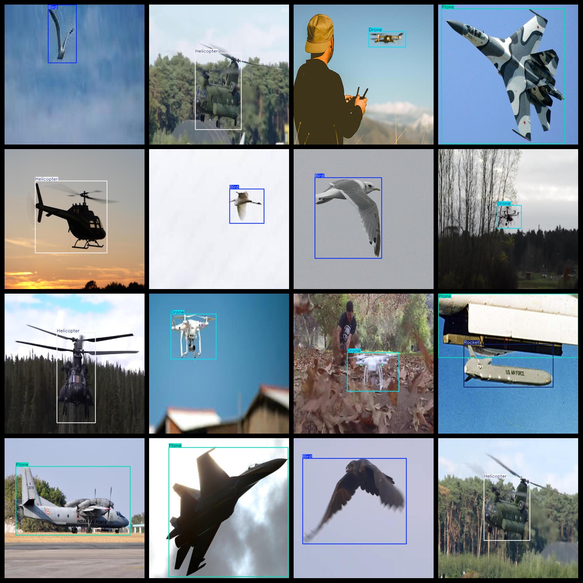 标签名称:["Bird","Drone","Helicopter","Plane","Rocket"]