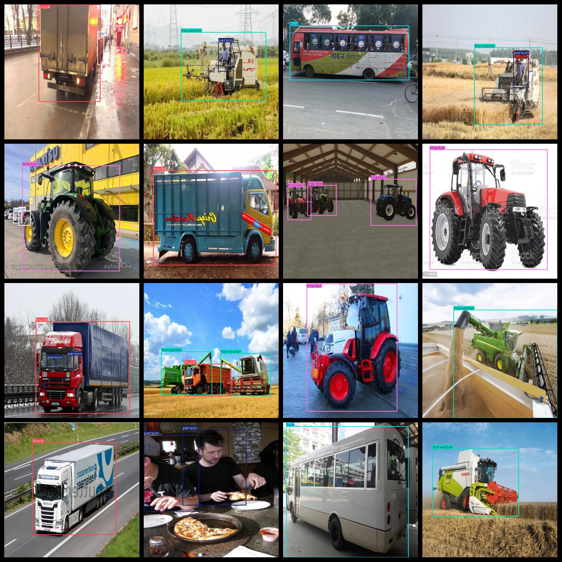 标签名称:["agricultural_machinery","bus","car","harvester","person","tractor","truck"]