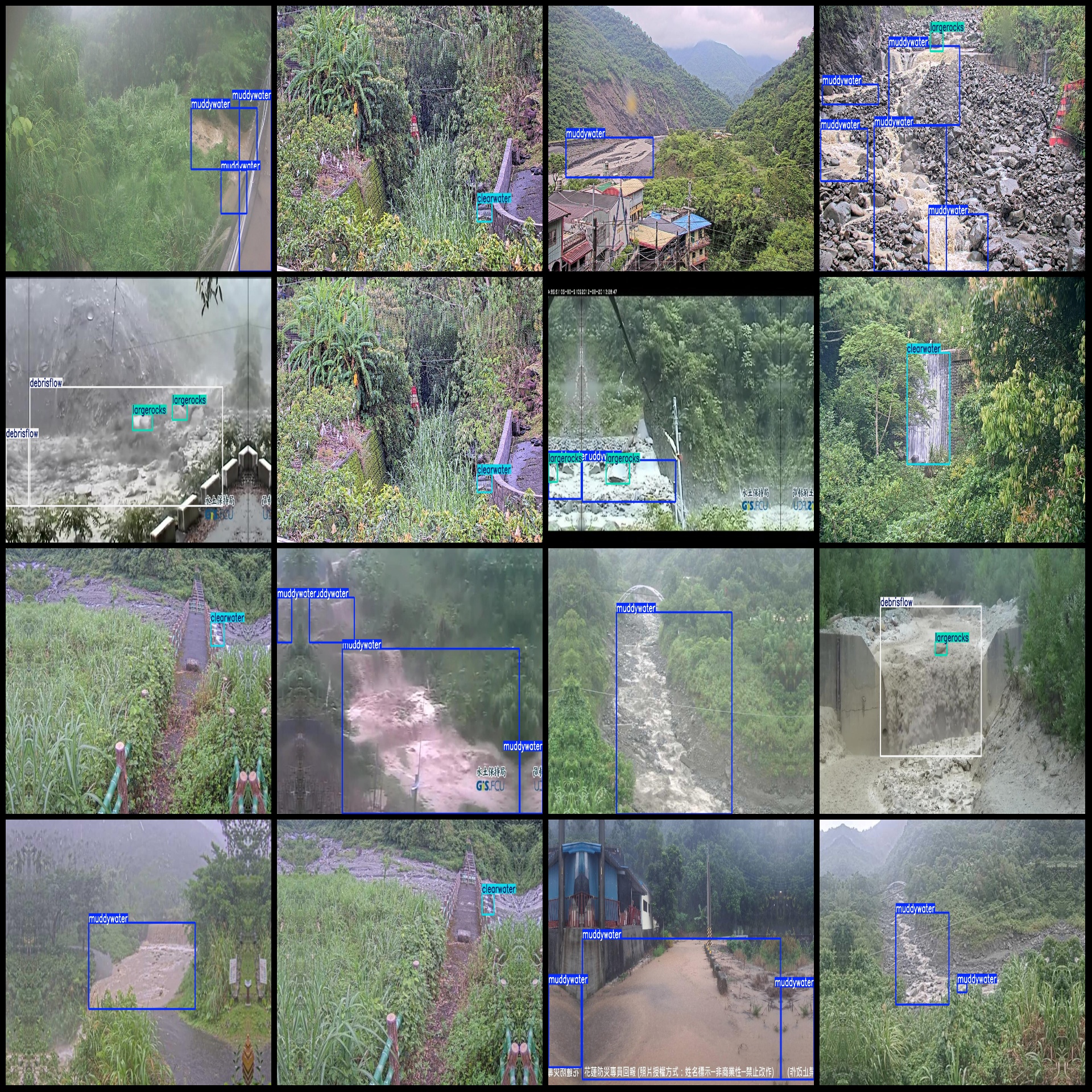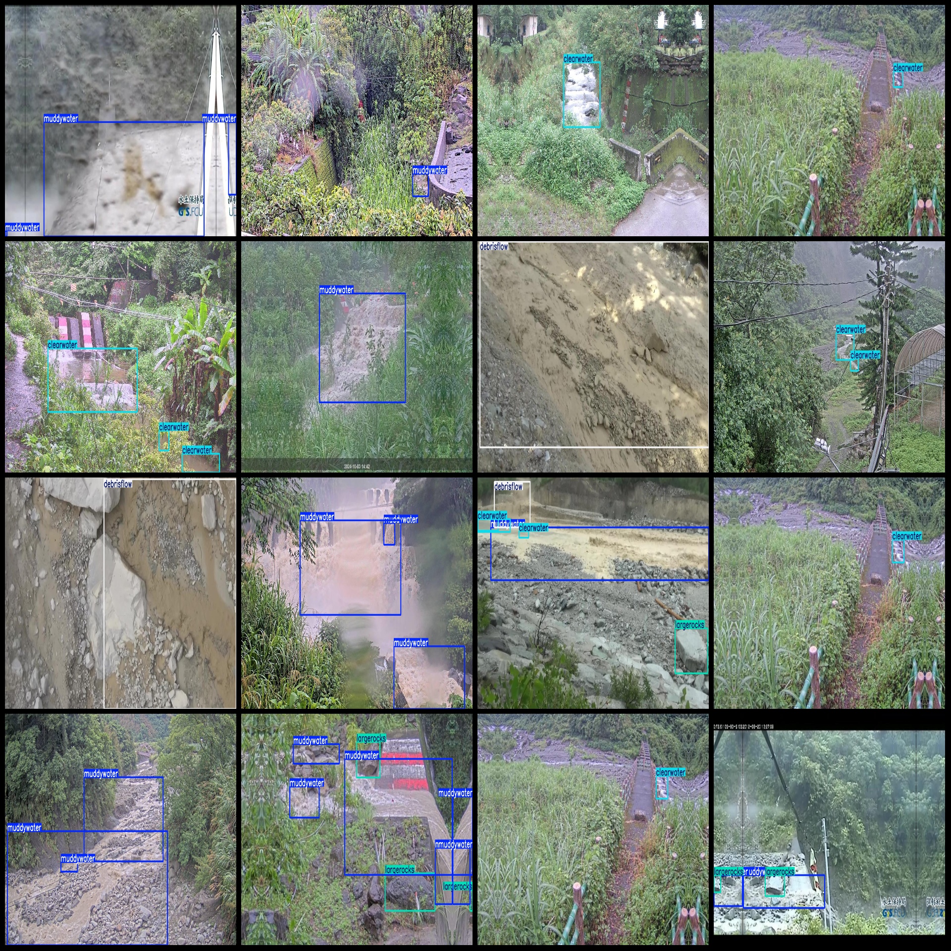 标注类别名称(注意yolo格式类别顺序不和这个对应,而以labels文件夹classes.txt为准):["clearwater","debrisflow","largerocks","muddywater"]