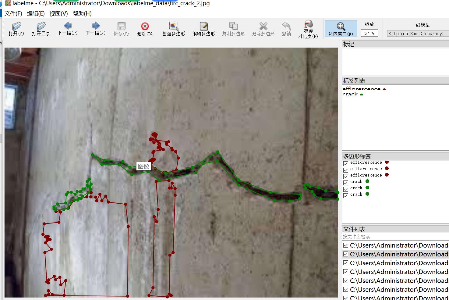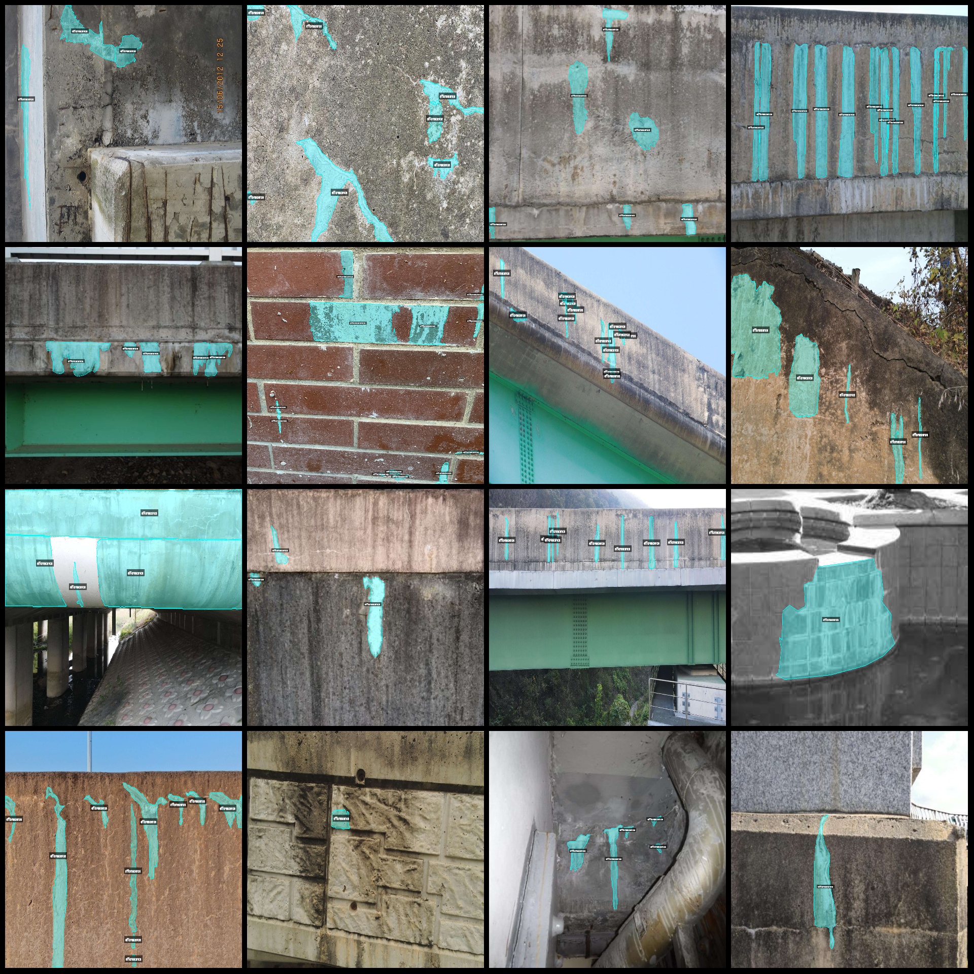 标注类别名称:["efflorescence","crack"]