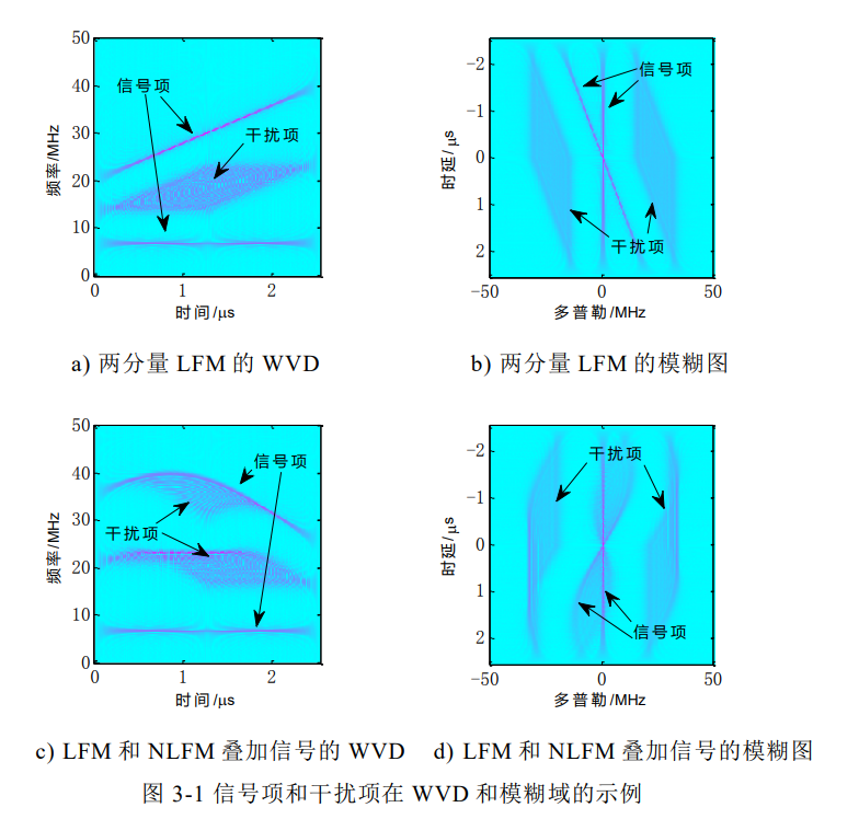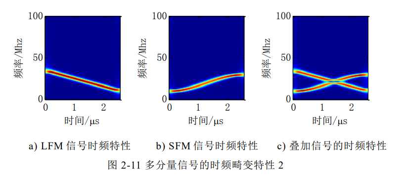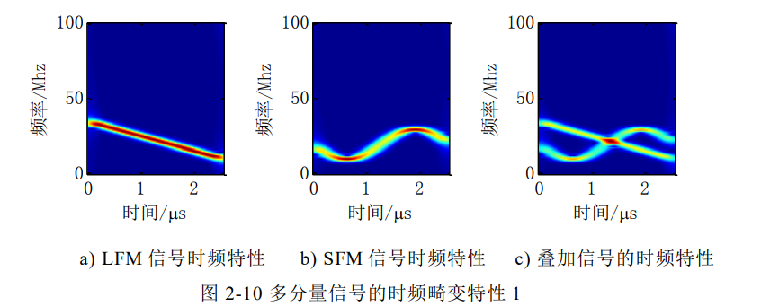 信号建模:针对战场多分量雷达信号,建立LFM、SFM信号的数学模型,分析其时频特征;