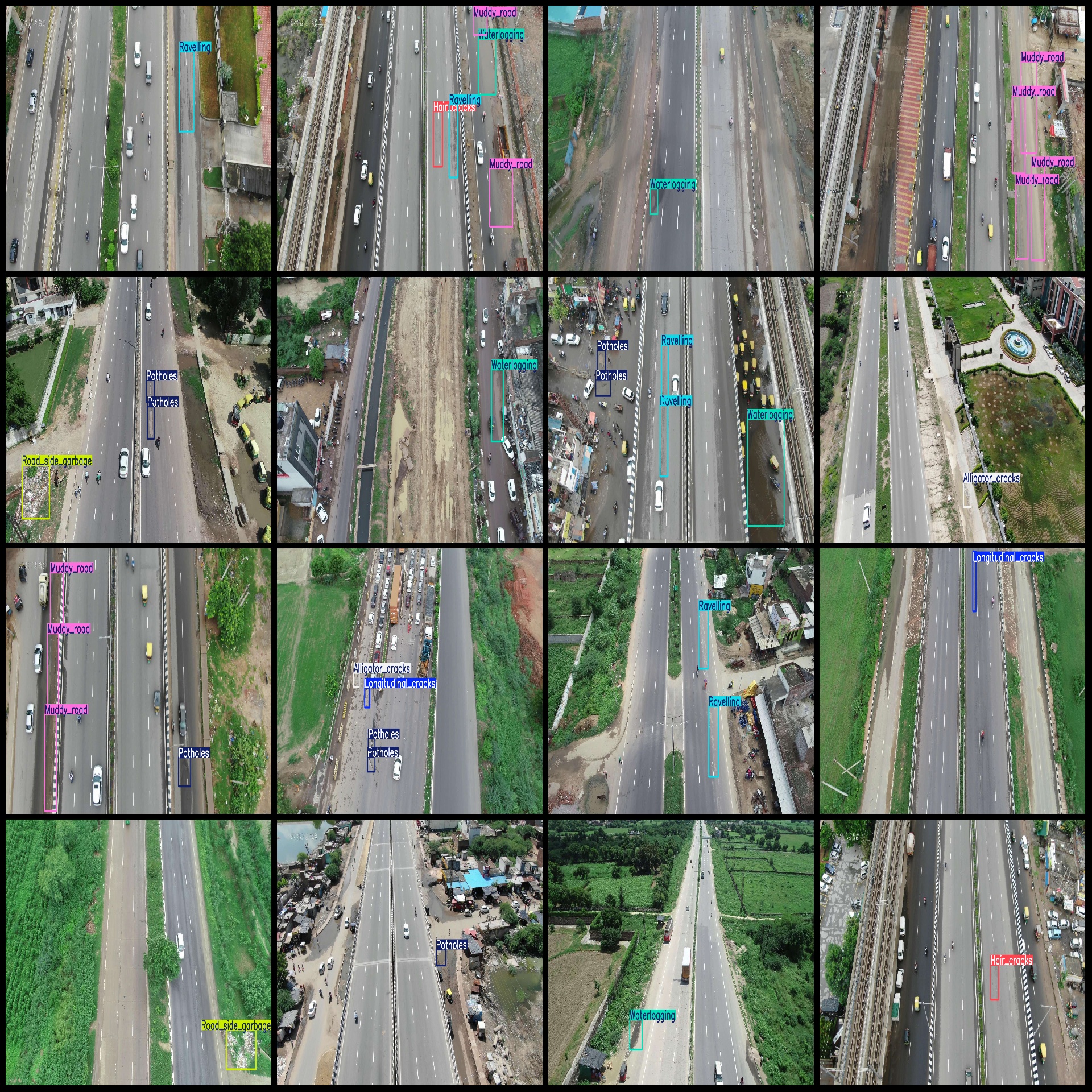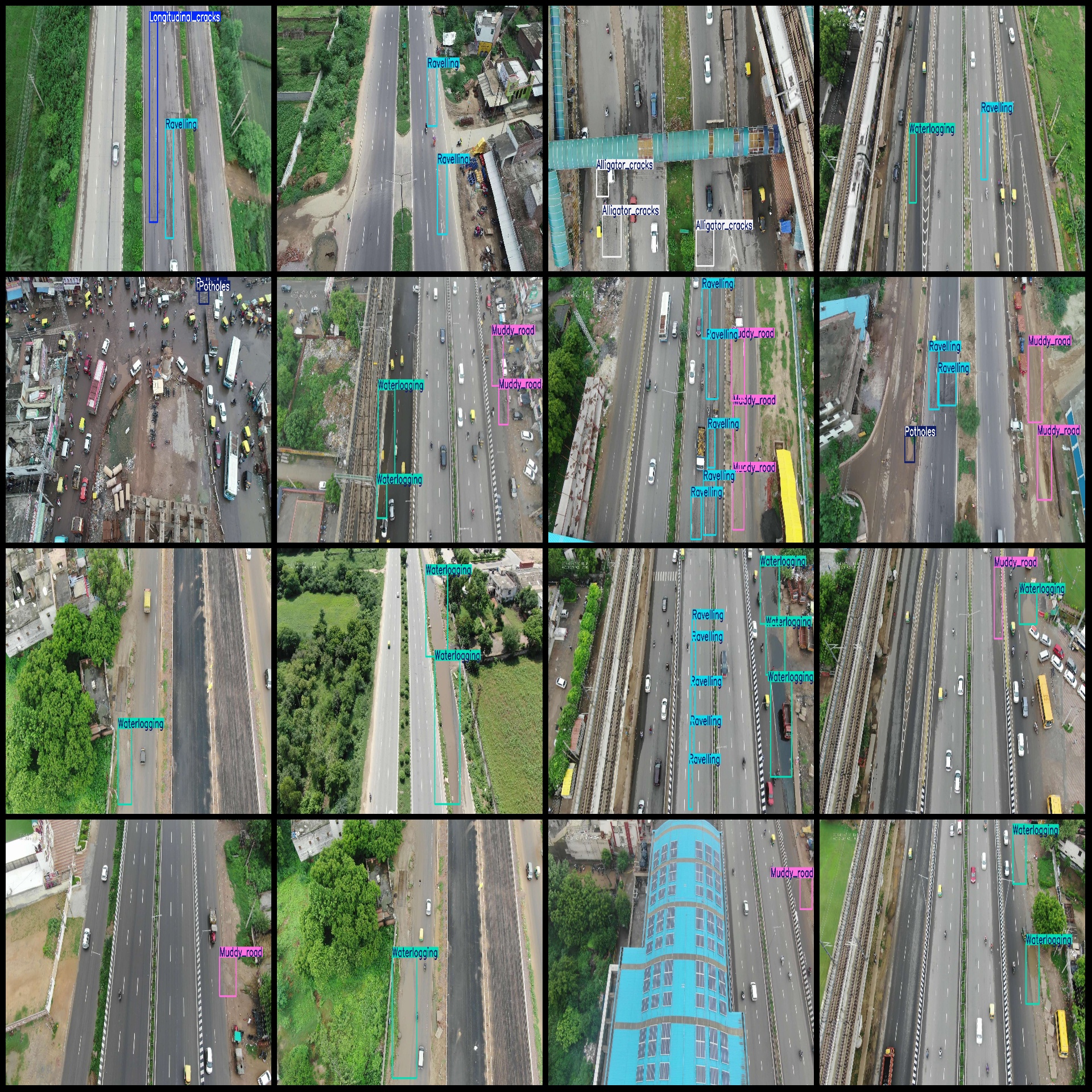 标注类别名称(注意yolo格式类别顺序不和这个对应,而以labels文件夹classes.txt为准):["Alligator_cracks","Hair _cracks","Hair_cracks","Longitudinal_cracks","Mud_Heaps","Mud_heaps","Muddy_road","Potholes","Ravelling","Road_side_garbage","Waterlogging"]